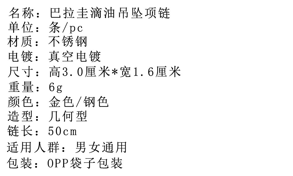 Paraguay Oil Drop Pendant Stainless Steel Necklace Ethnic Style Female Niche Design Sense Light Luxury Geometric Versatile Jewelry