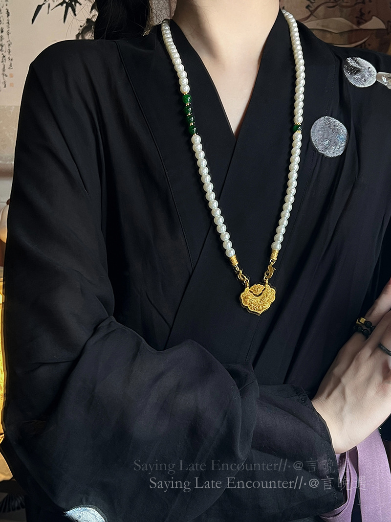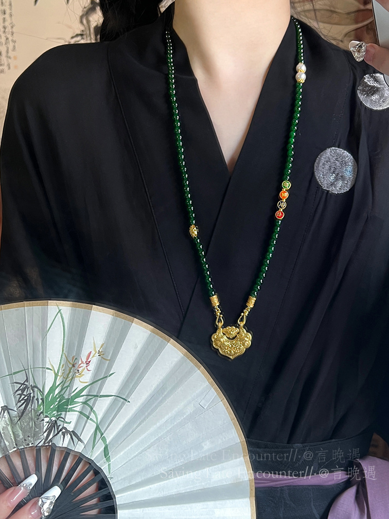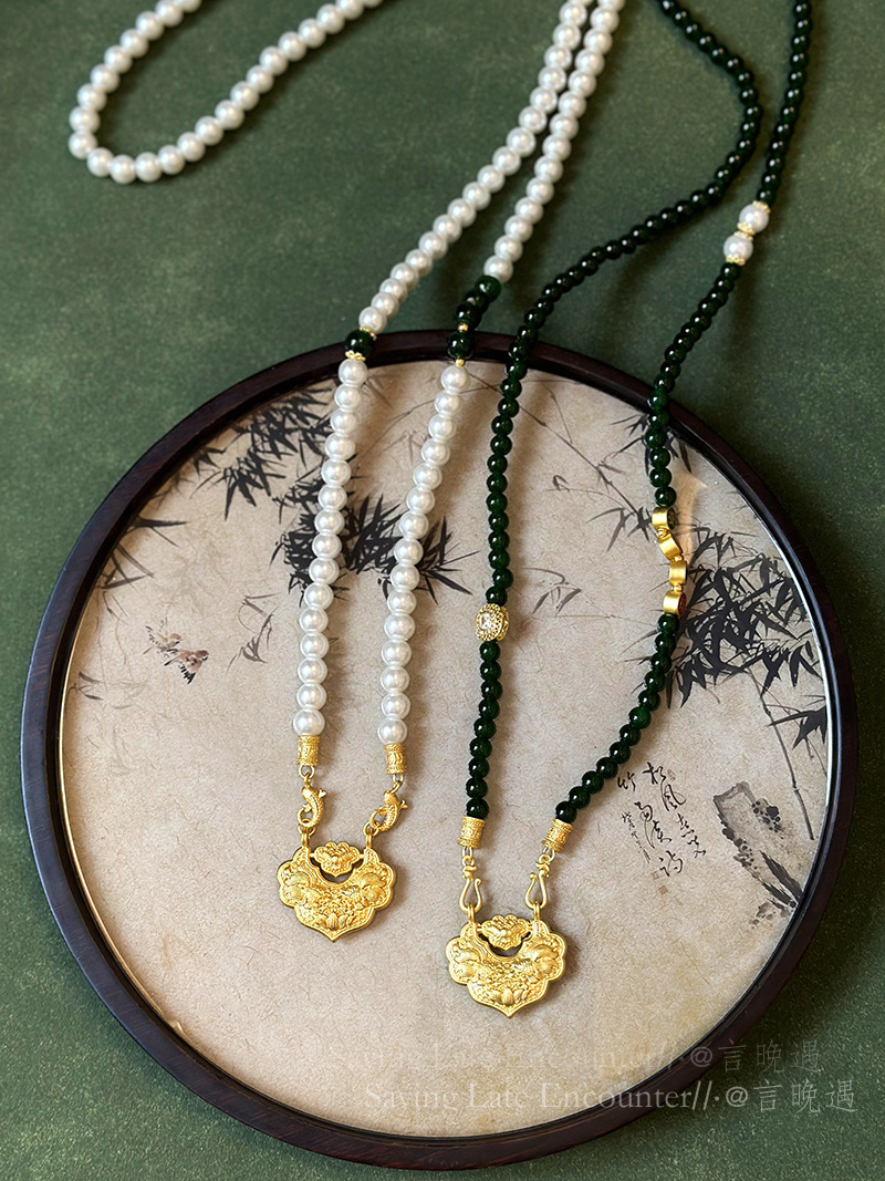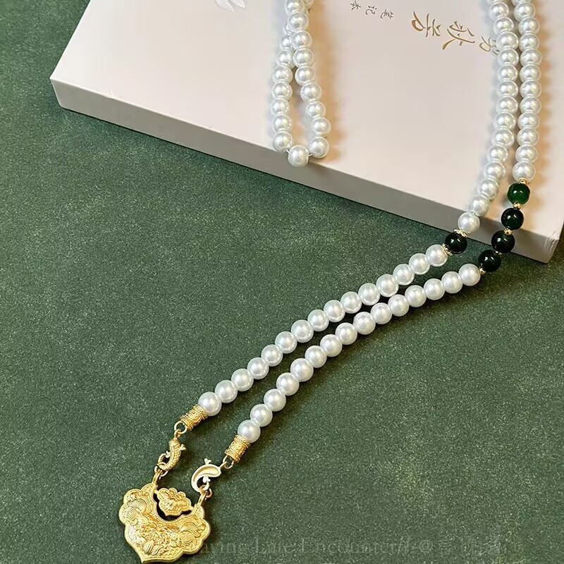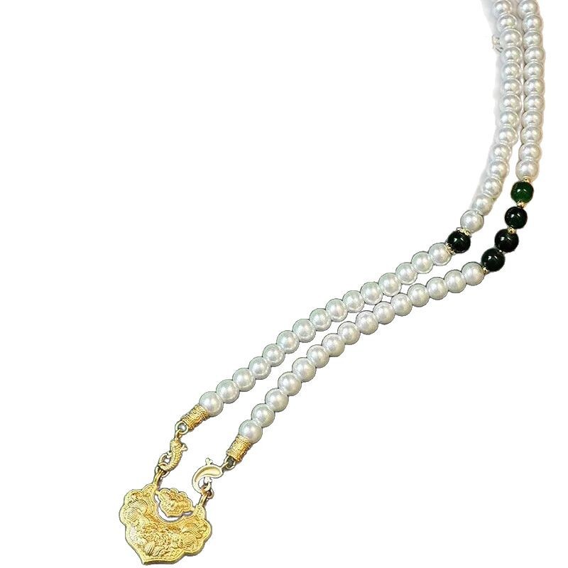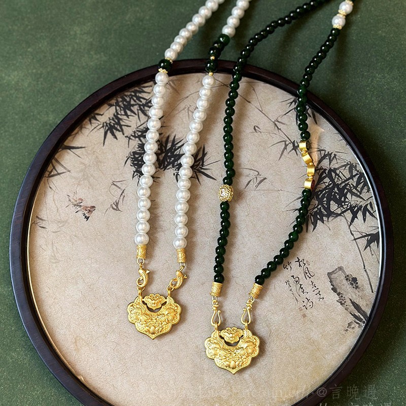 Golden Green Onyx Pearl Beaded Necklace Women's New Chinese Style Ancient Style Cheongsam Accessories
