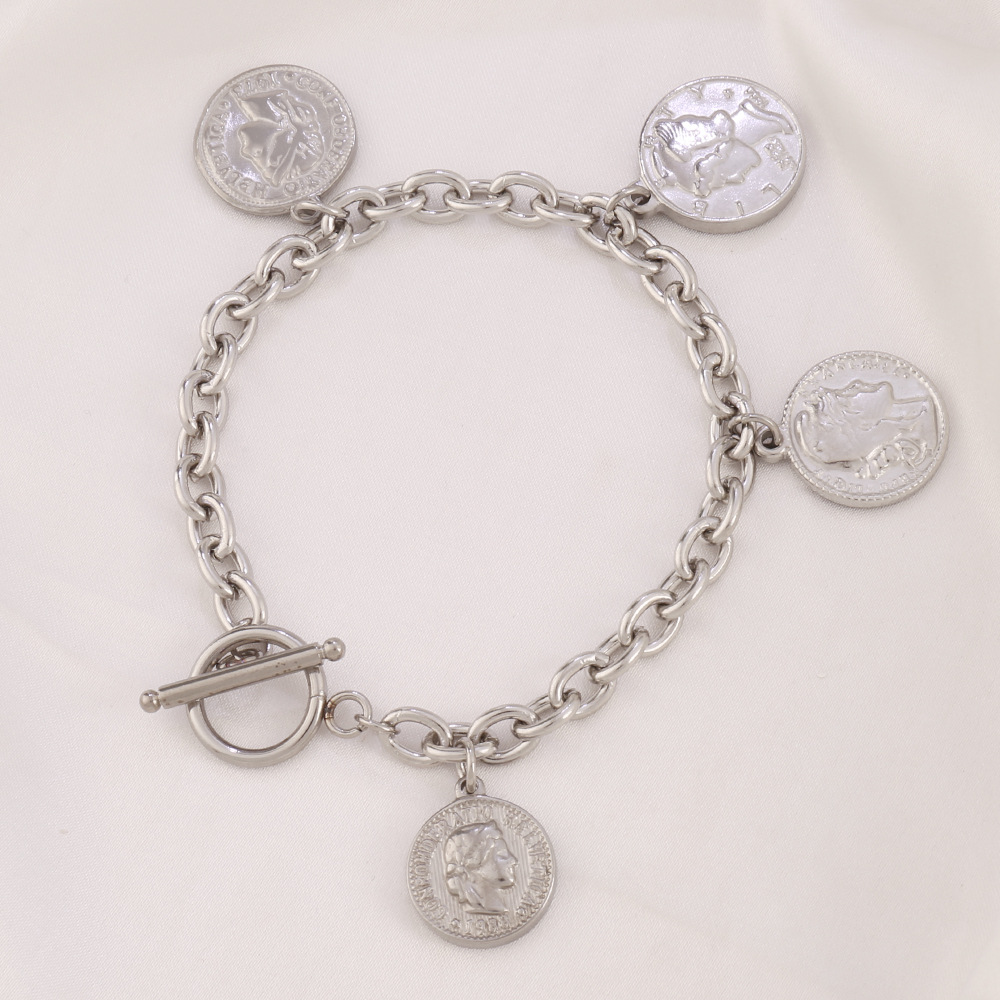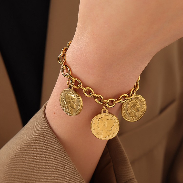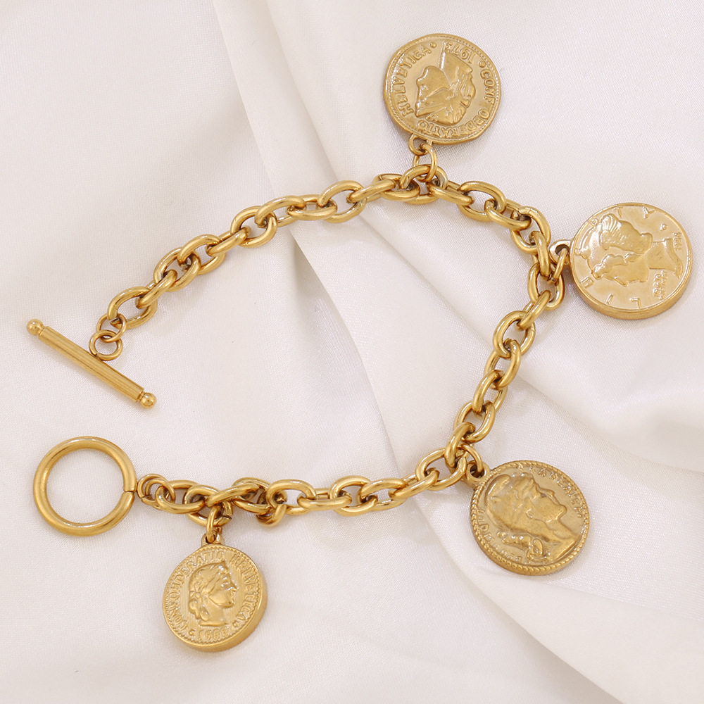 European and American simple coin pendant bracelet women's fashion stainless steel 18K gold non-fading OT buckle bracelet jewelry wholesale