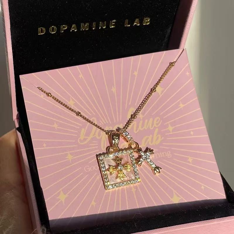 Golden Diamond Square Cruciferous Necklace Cross Double Pendant Men's and Women's Classic Fashion Brand White Diamond Girl