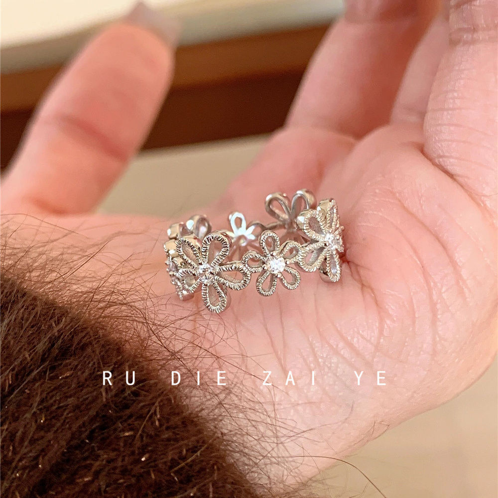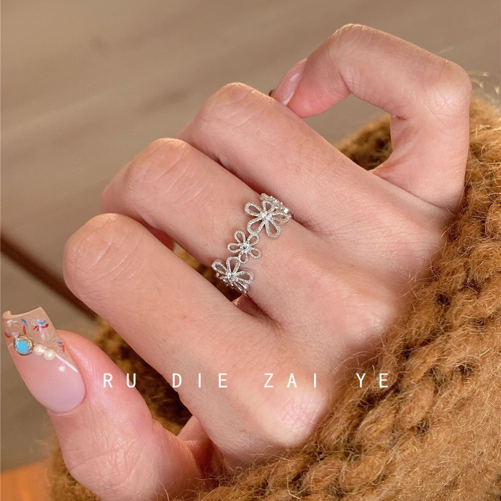 Kuning Sweet silver Lace Lace Ring Women's Light Luxury Exquisite Spring and Summer Niche Design Open Ring Ring