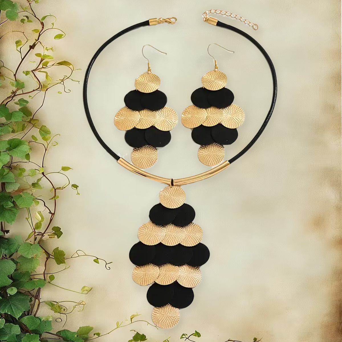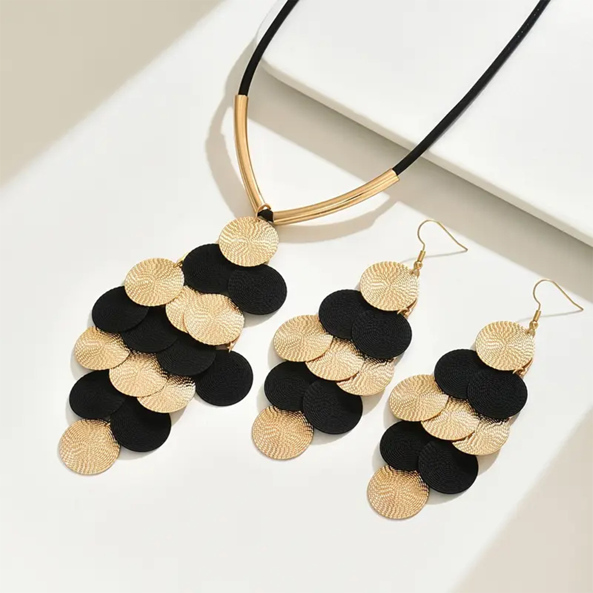 A Set of Simple Metal Discs, Two-Color Splicing Earrings and Necklace Set, Trendy Ins Design and Sense of Design Ears
