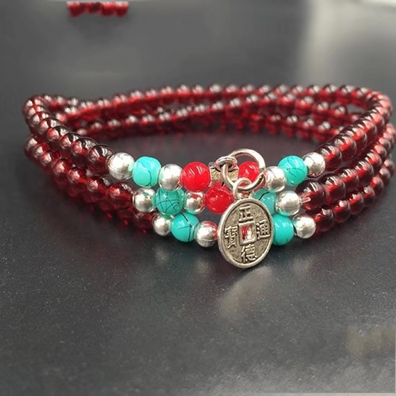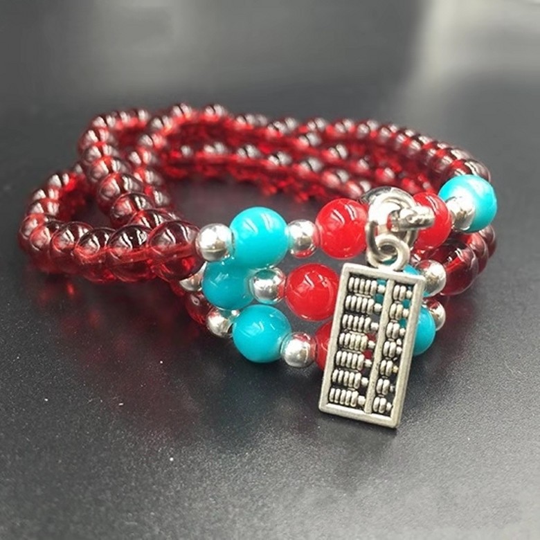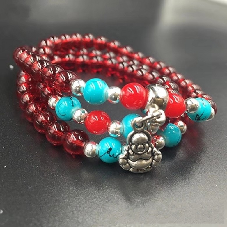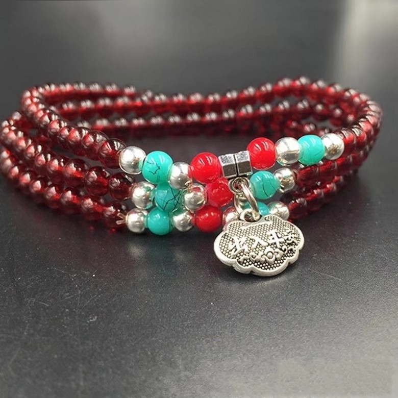 4mm imitation garnet three-circle bracelet-randomly mixed hair