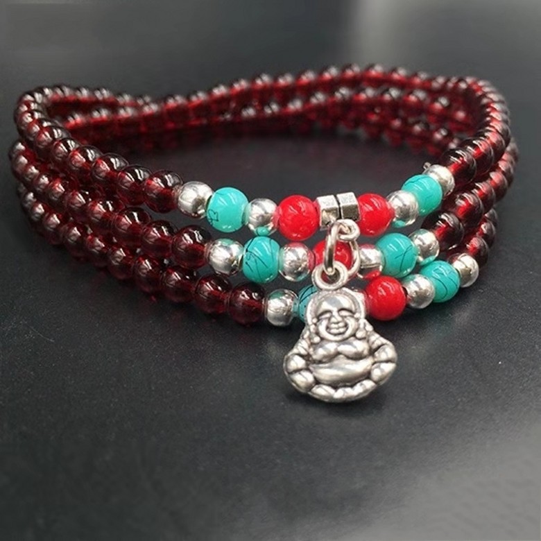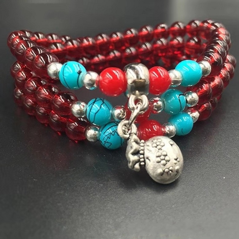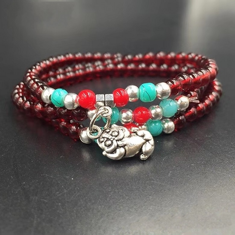 Ethnic-style imitation garnet bracelet 6mm multi-circle pixiu crystal bracelet multi-layer bracelet small gift stall supply