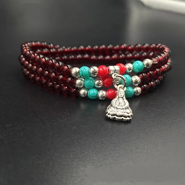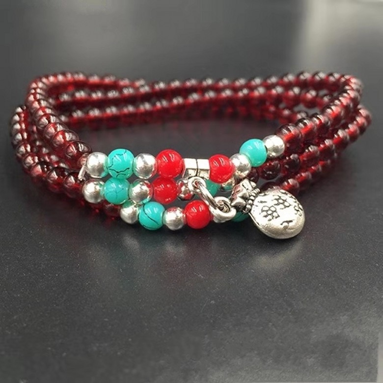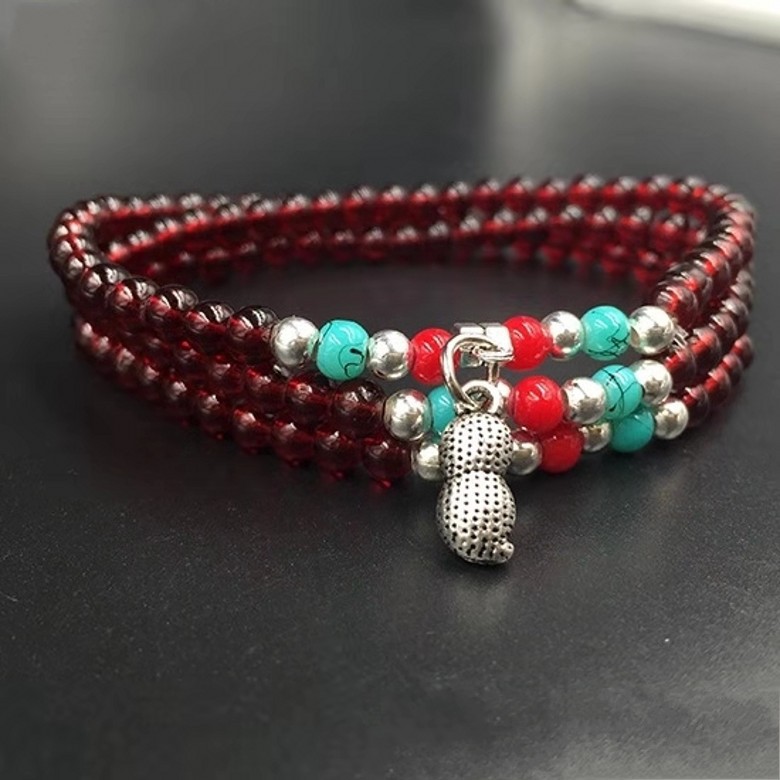 Color: 4mm imitation garnet three-circle bracelet-randomly mixed hair