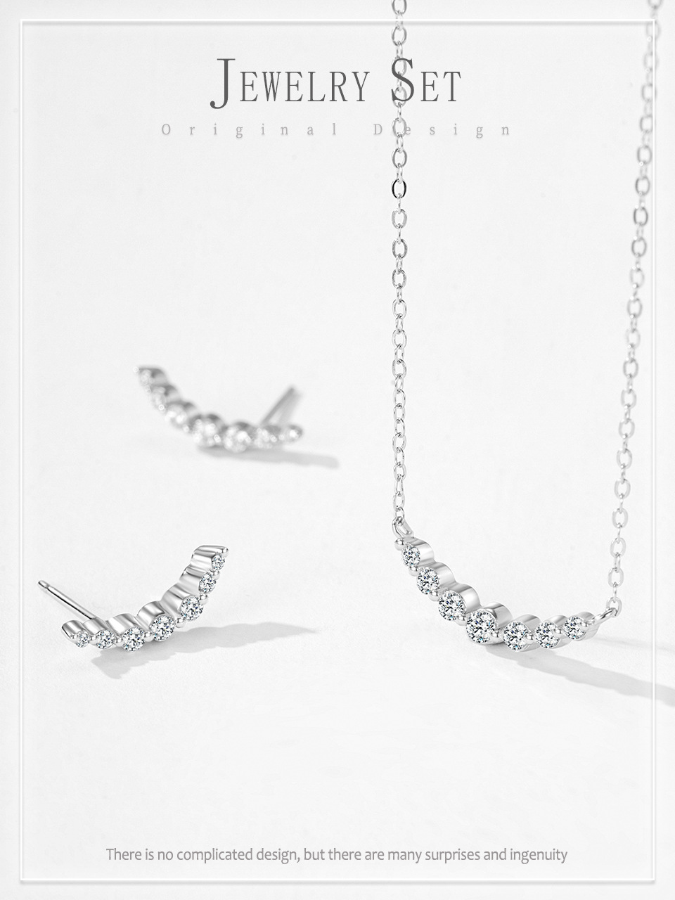S925 Sterling Silver One-word Diamond Smile Line Necklace Earrings Women's Light Luxury High-end Elegant Elegant suit