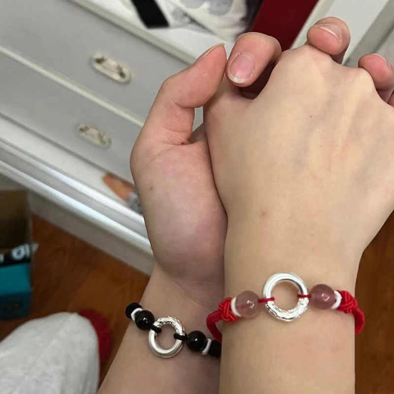 [Product Supply] Guofeng Benmingnian Red Rope Hand Rope Foot Silver Gankun Circle Couple Bracelet Female Safety Buckle