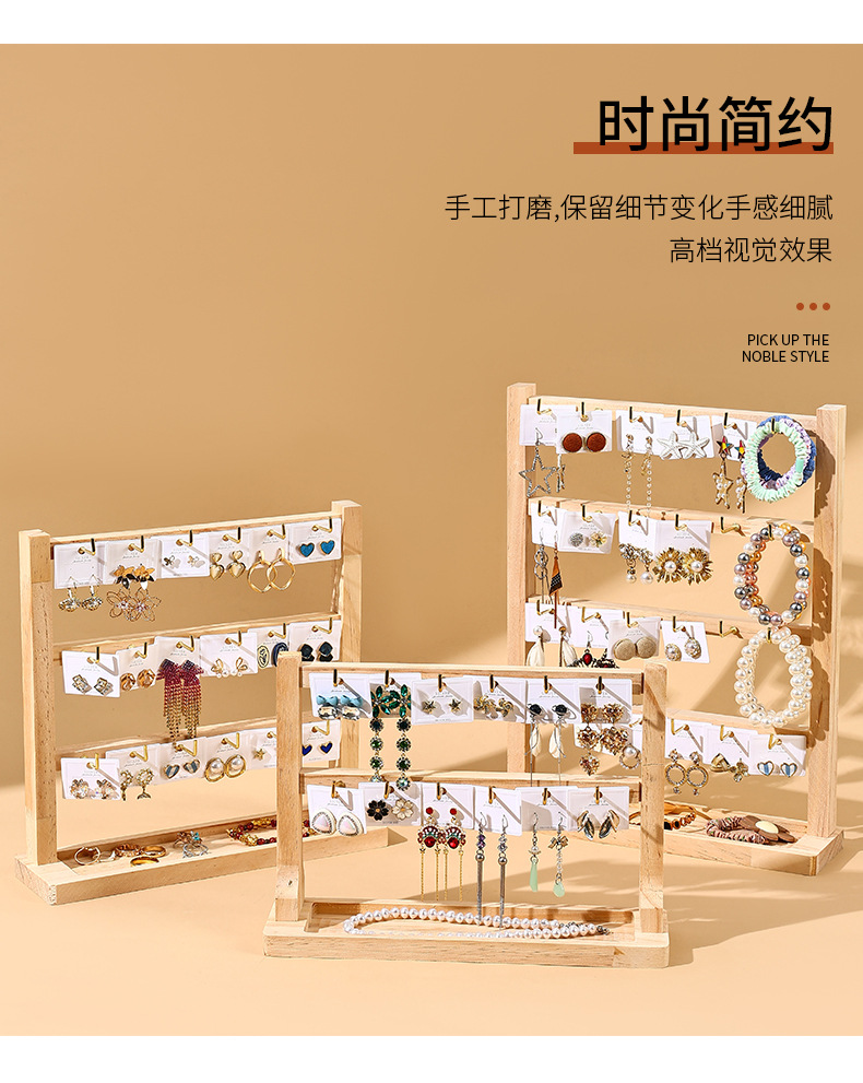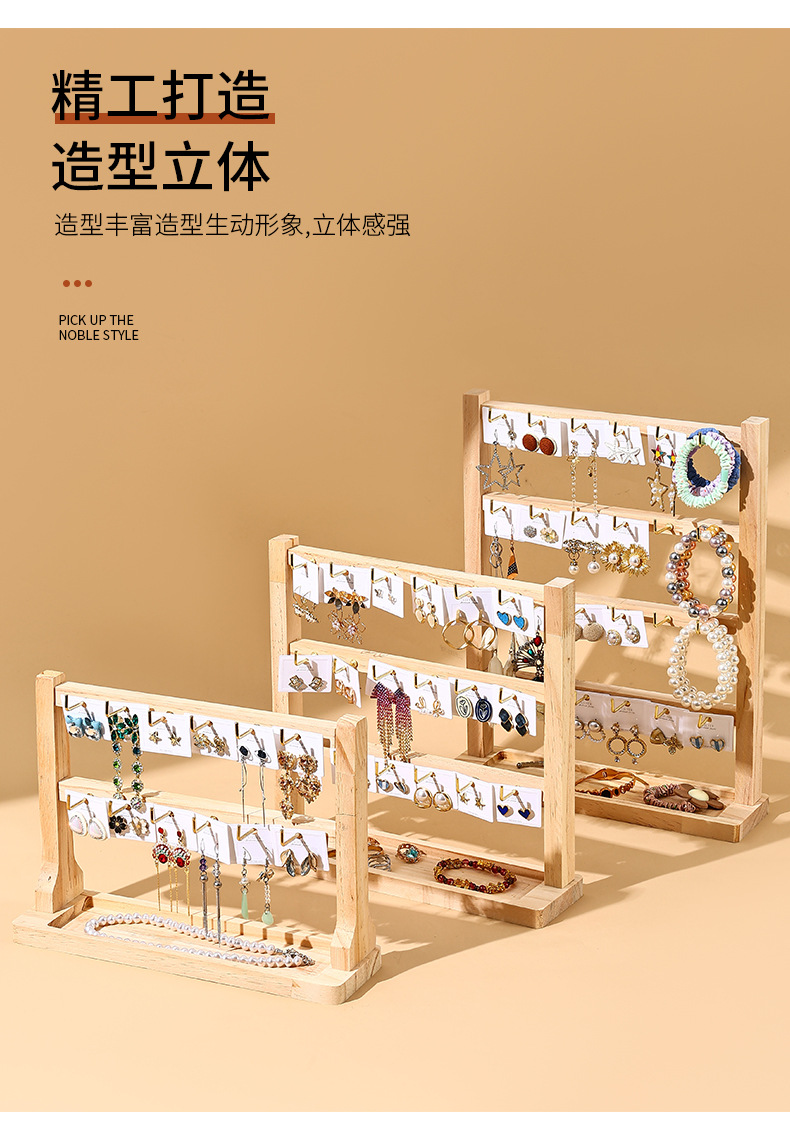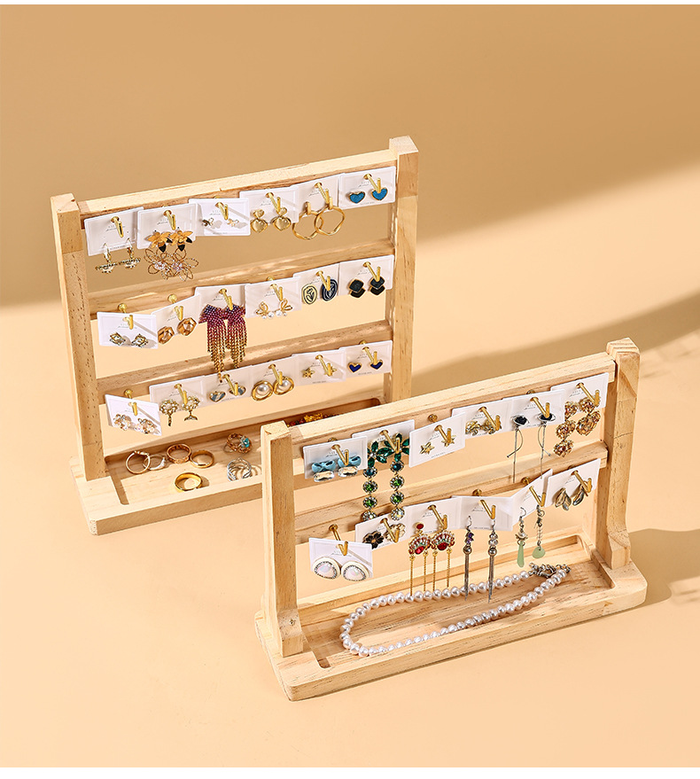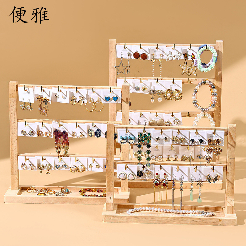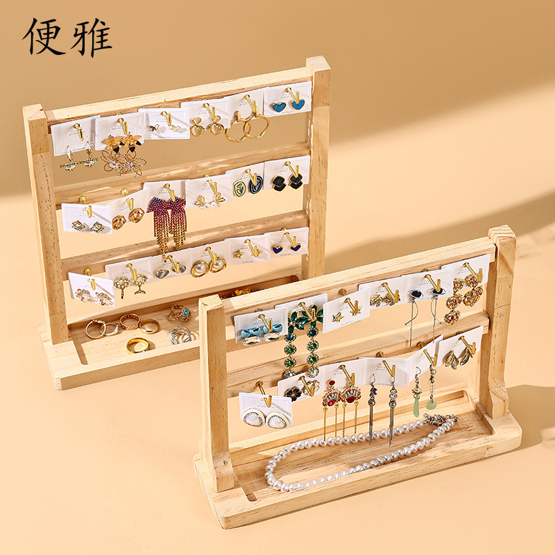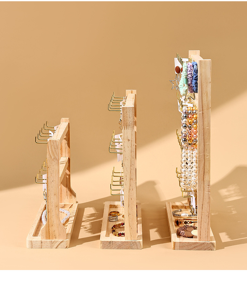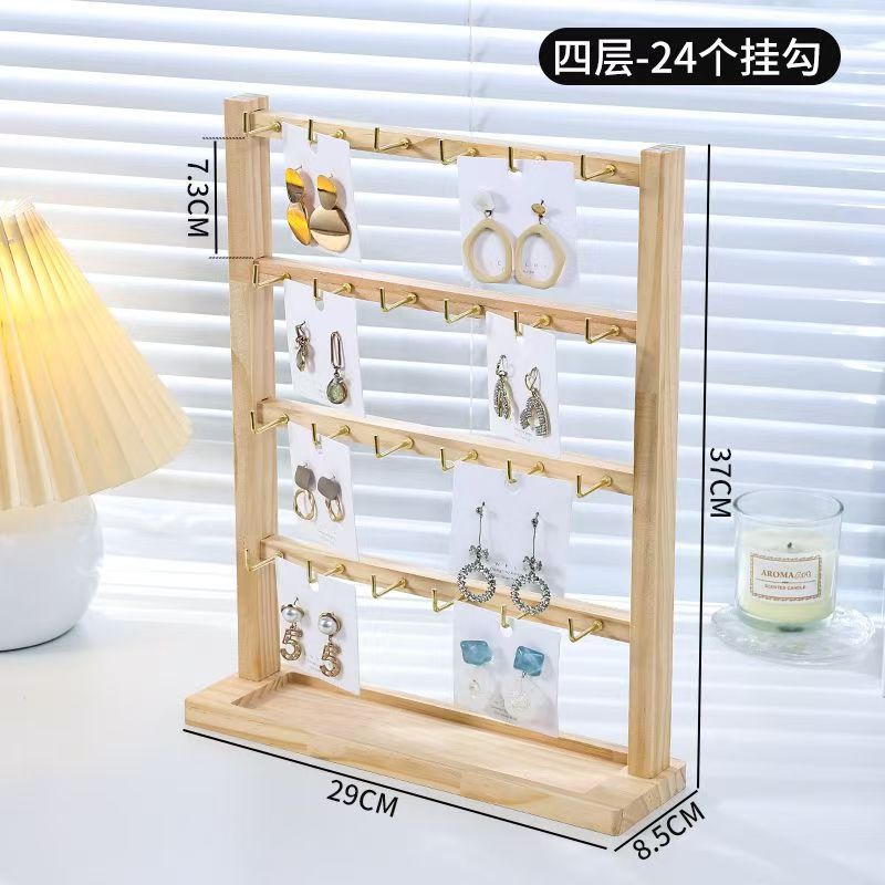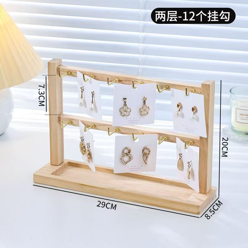 Jewelry Keychain Earring Pendant Display Rack Solid Wood Small Accessory Hanging Rack Hook Store Counter Multi-Layer Storage