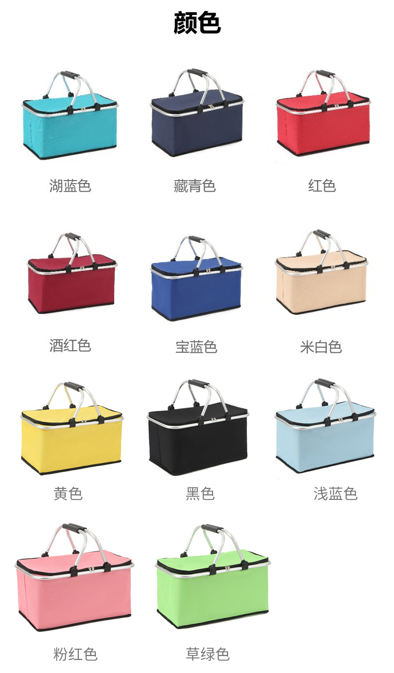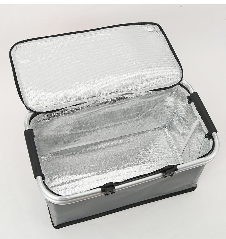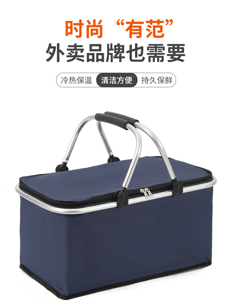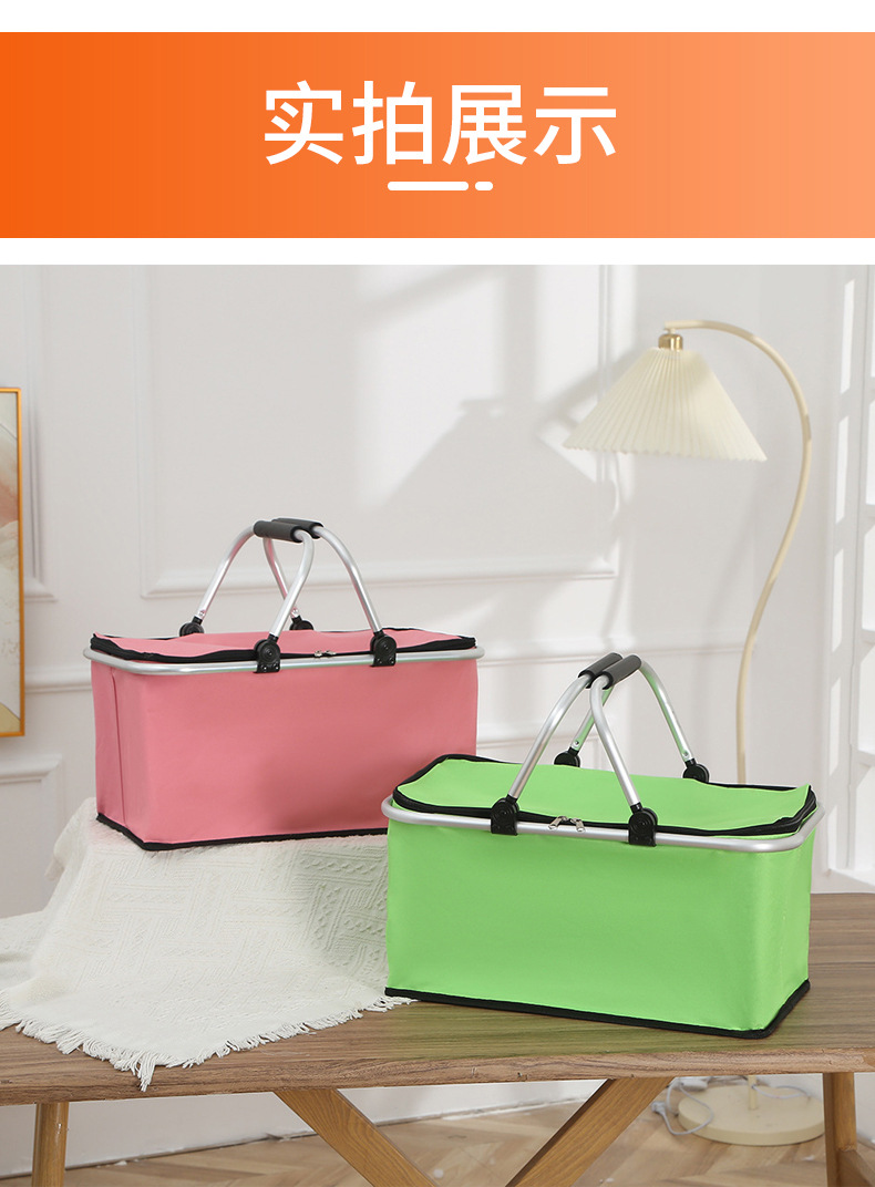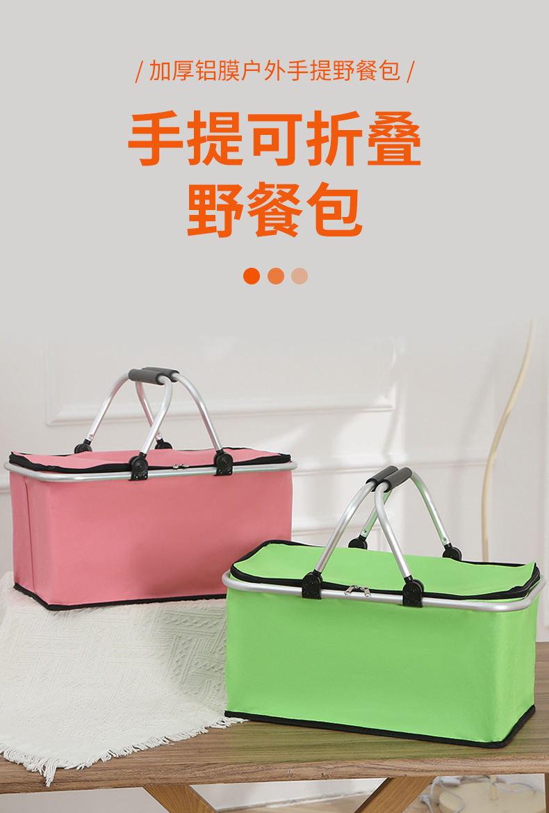 Cross-border portable foldable picnic bag thickened aluminum takeaway ice bag Oxford cloth large capacity camping insulation basket