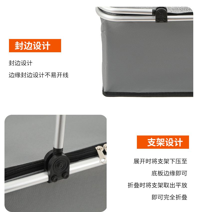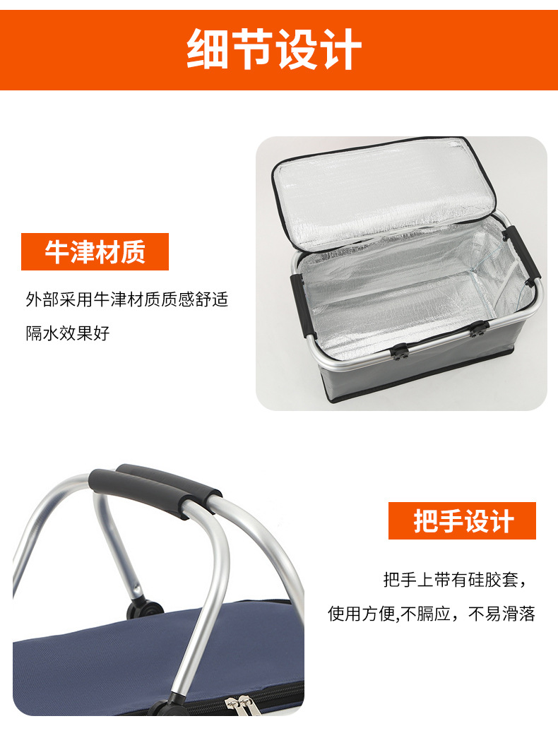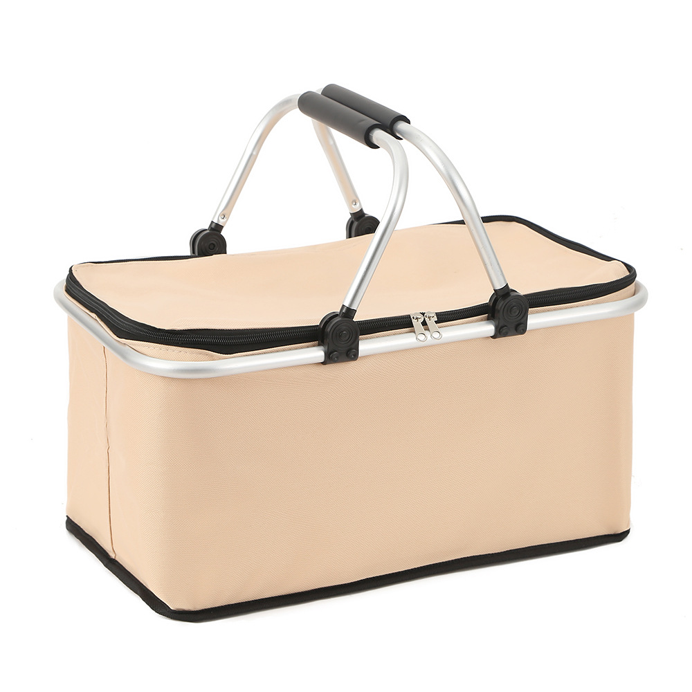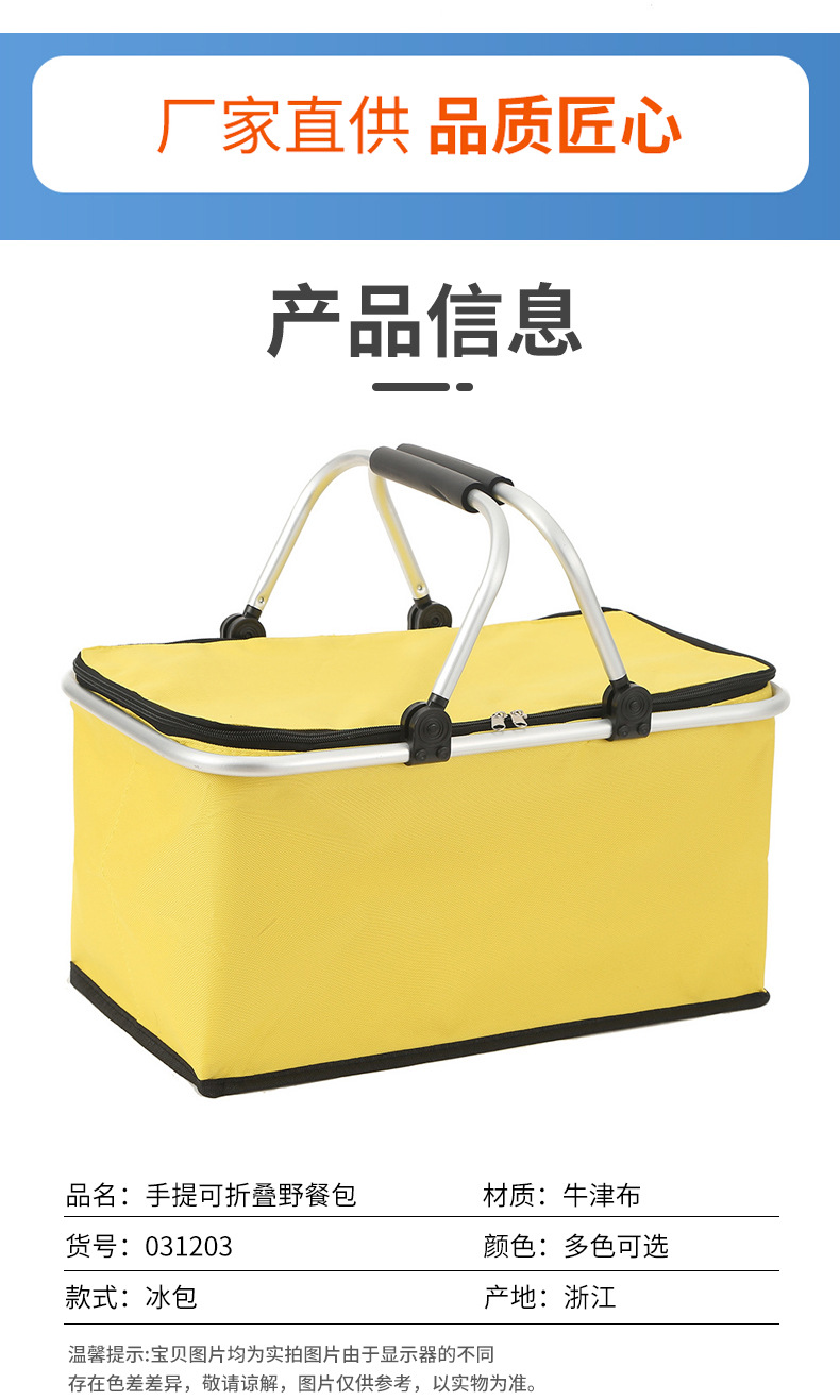 Cross-border portable foldable picnic bag thickened aluminum takeaway ice bag Oxford cloth large capacity camping insulation basket