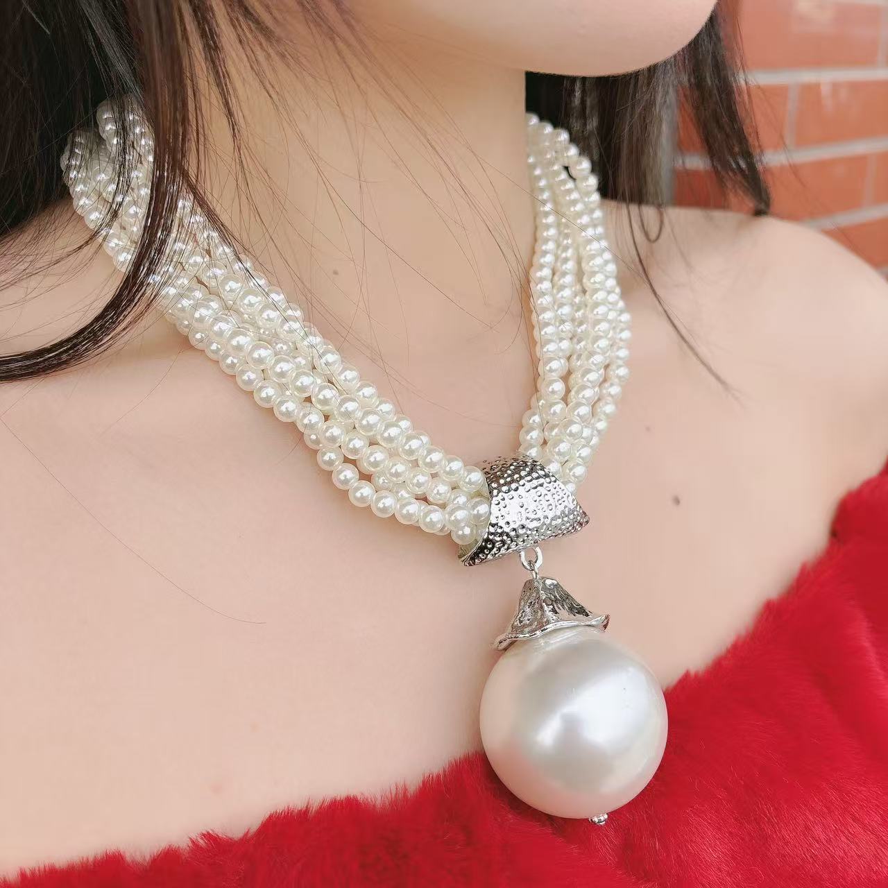 New multi-layer necklace large pearl personality exaggerated niche design fashion clavicle chain European and American necklace factory wholesale