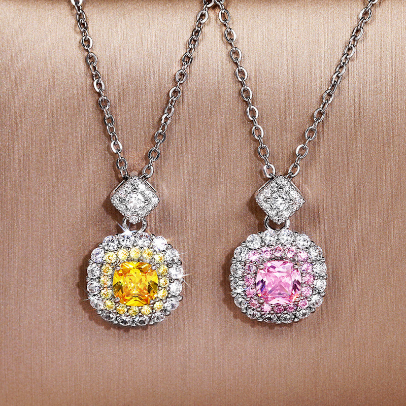 New Elegant Exquisite Fashion Pink Champagne Color Group Zircon Pendant Women's All-match Fashionable Clavicle Chain