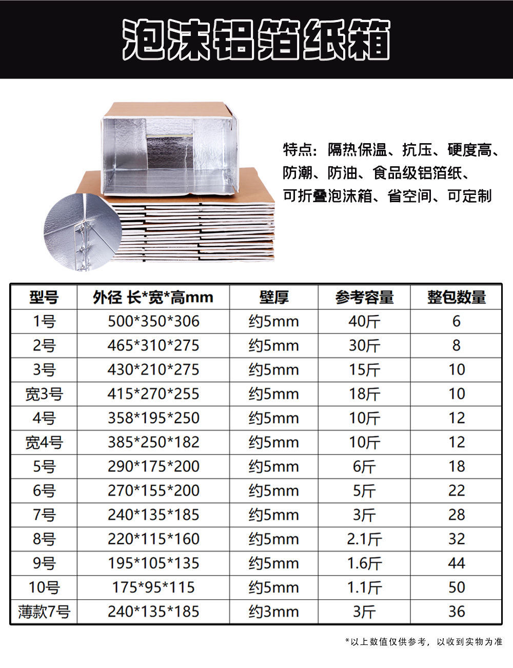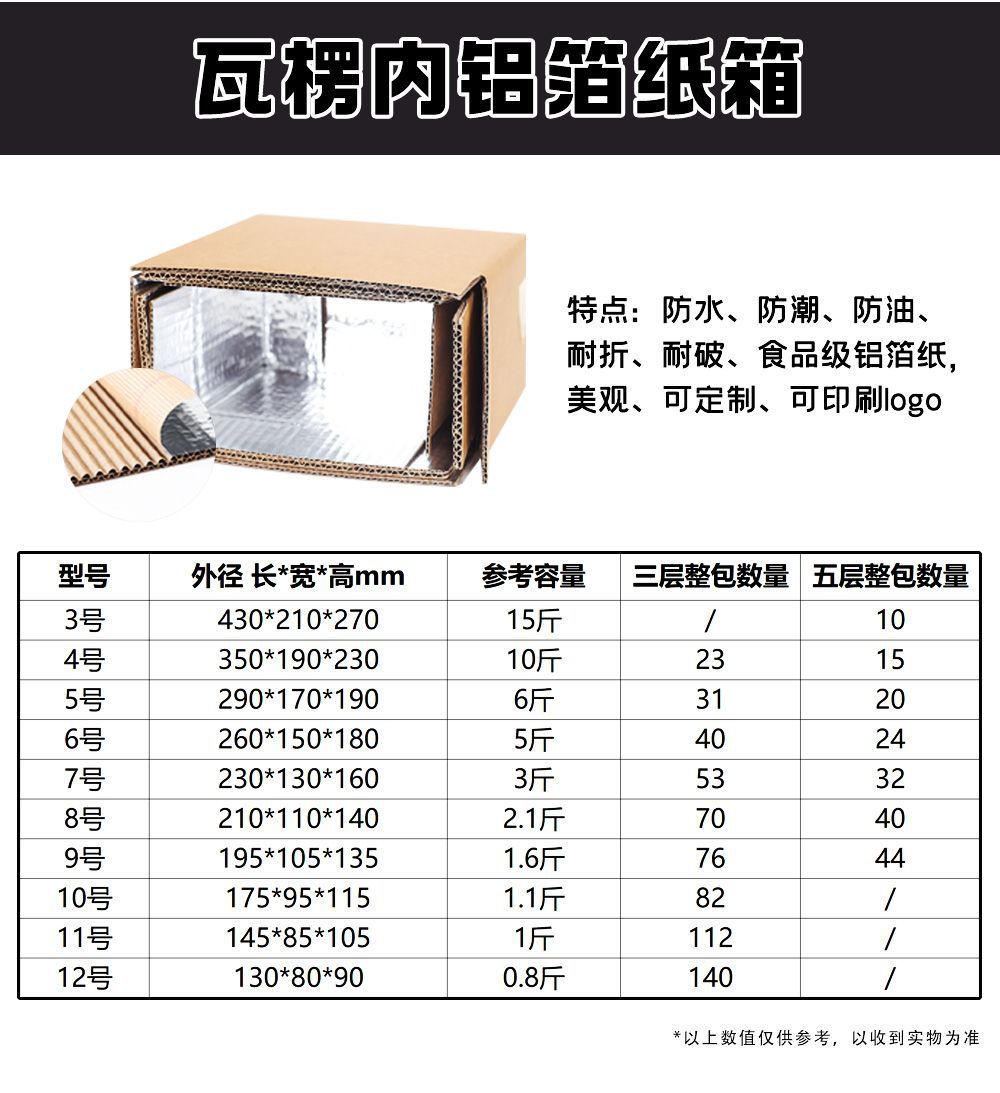 Specifications and models: [foam paper aluminum box] no. 3/10 pieces