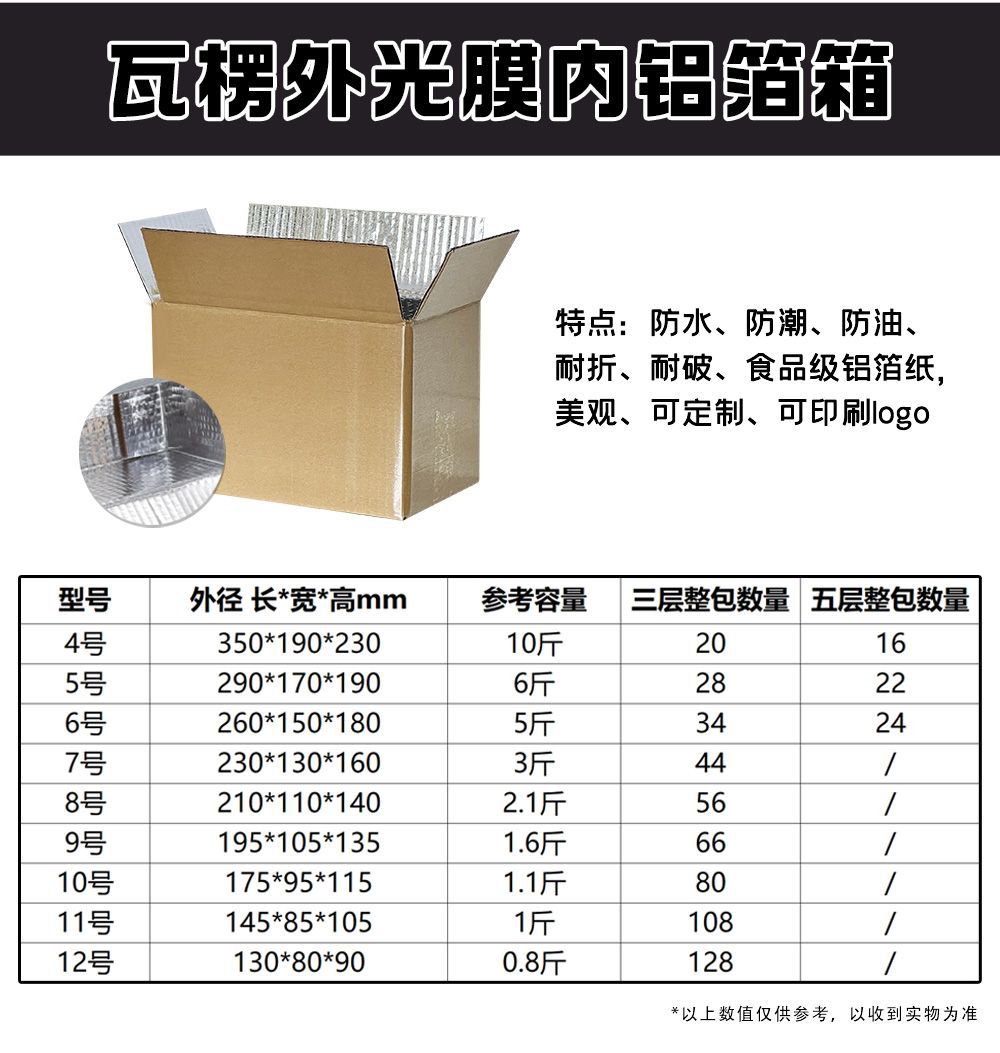 Specifications and models: [foam paper aluminum box] no. 4/12 pieces