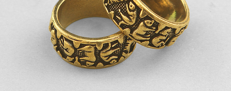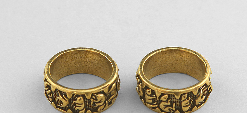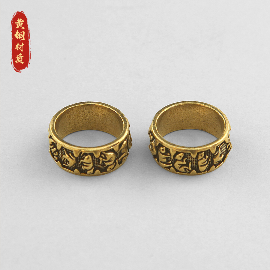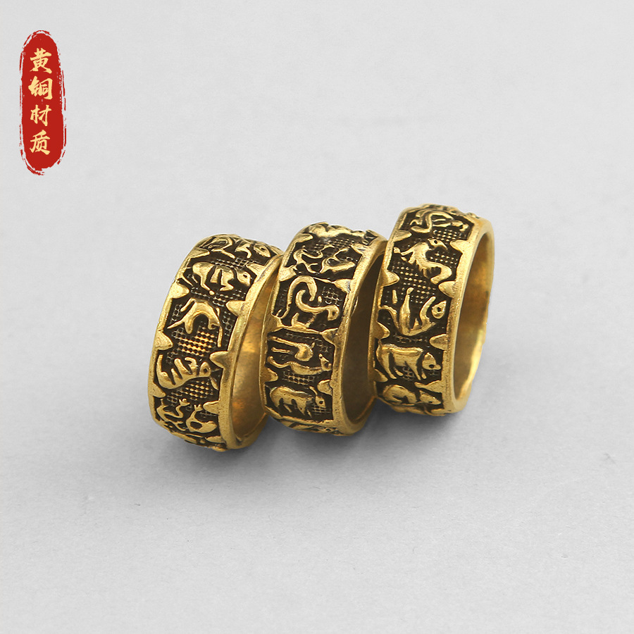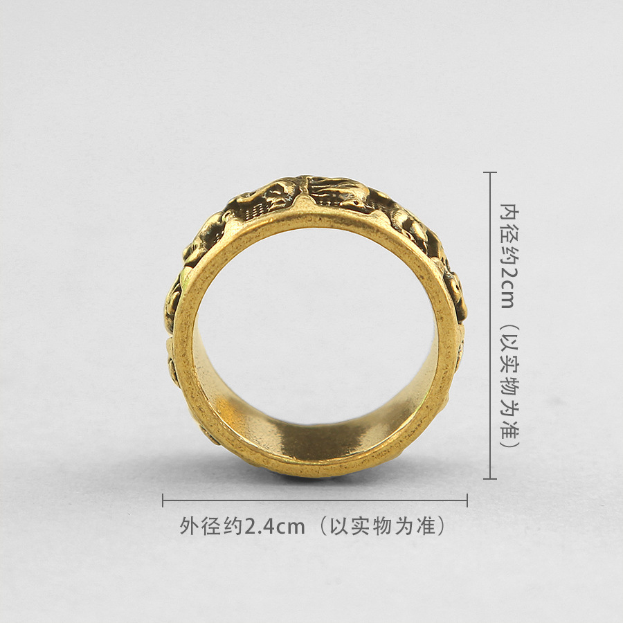 Retro Brass Zodiac Ring Nafu Ring Antique Miscellaneous Thimble Crafts Wen Play Small Bronze Ware Wholesale