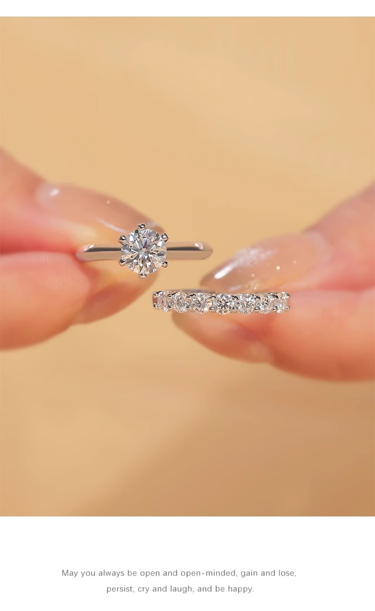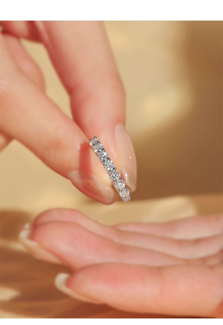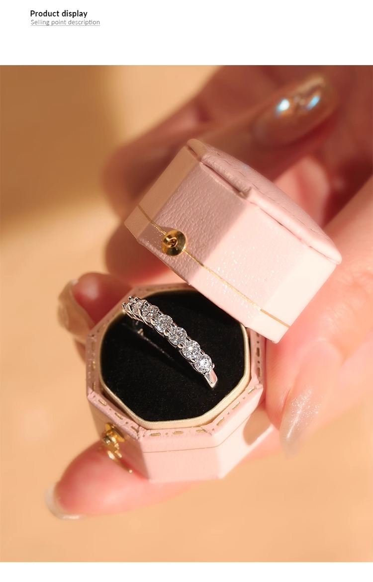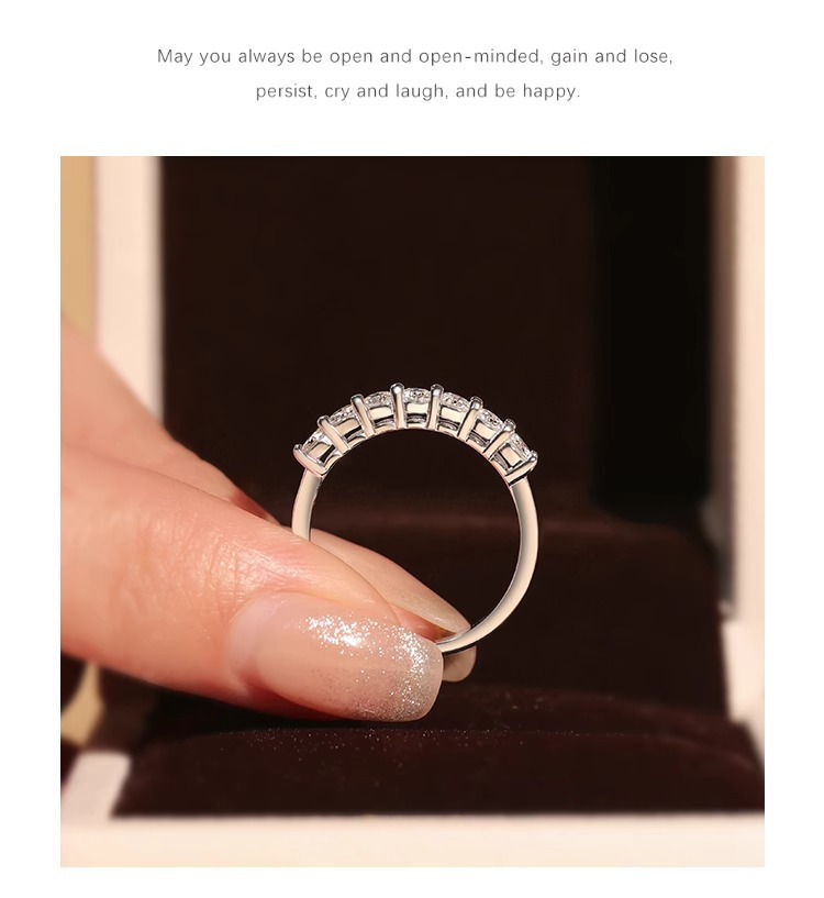 Simple Classic Imitation Moissanite Rai Diamond Ring Women's Fashionable Elegant Stacked Wearing All-match Seven-diamond Adjustable Ring