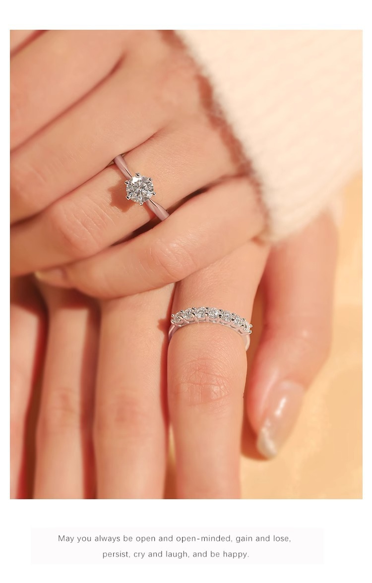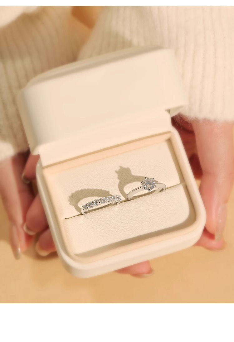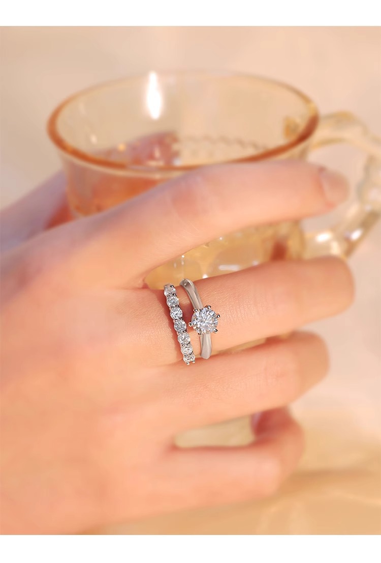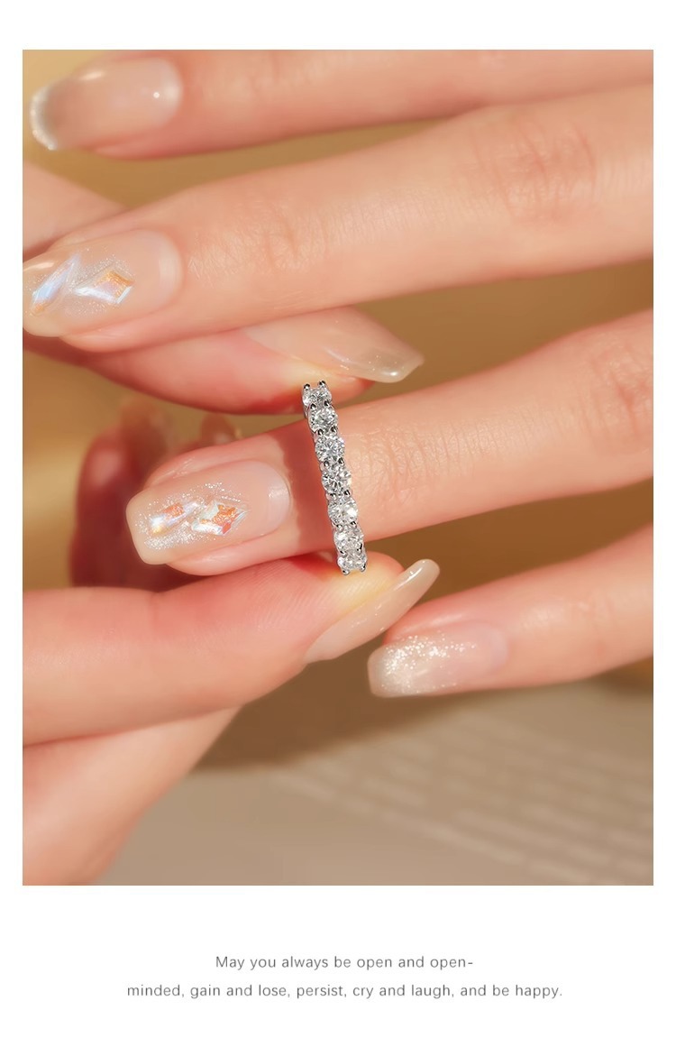 Simple Classic Imitation Moissanite Rai Diamond Ring Women's Fashionable Elegant Stacked Wearing All-match Seven-diamond Adjustable Ring