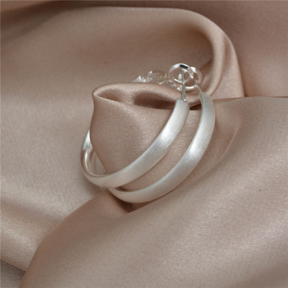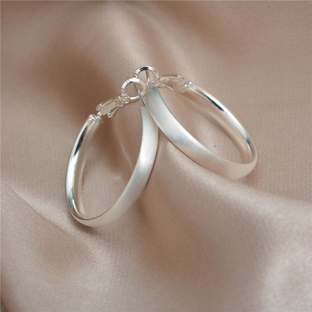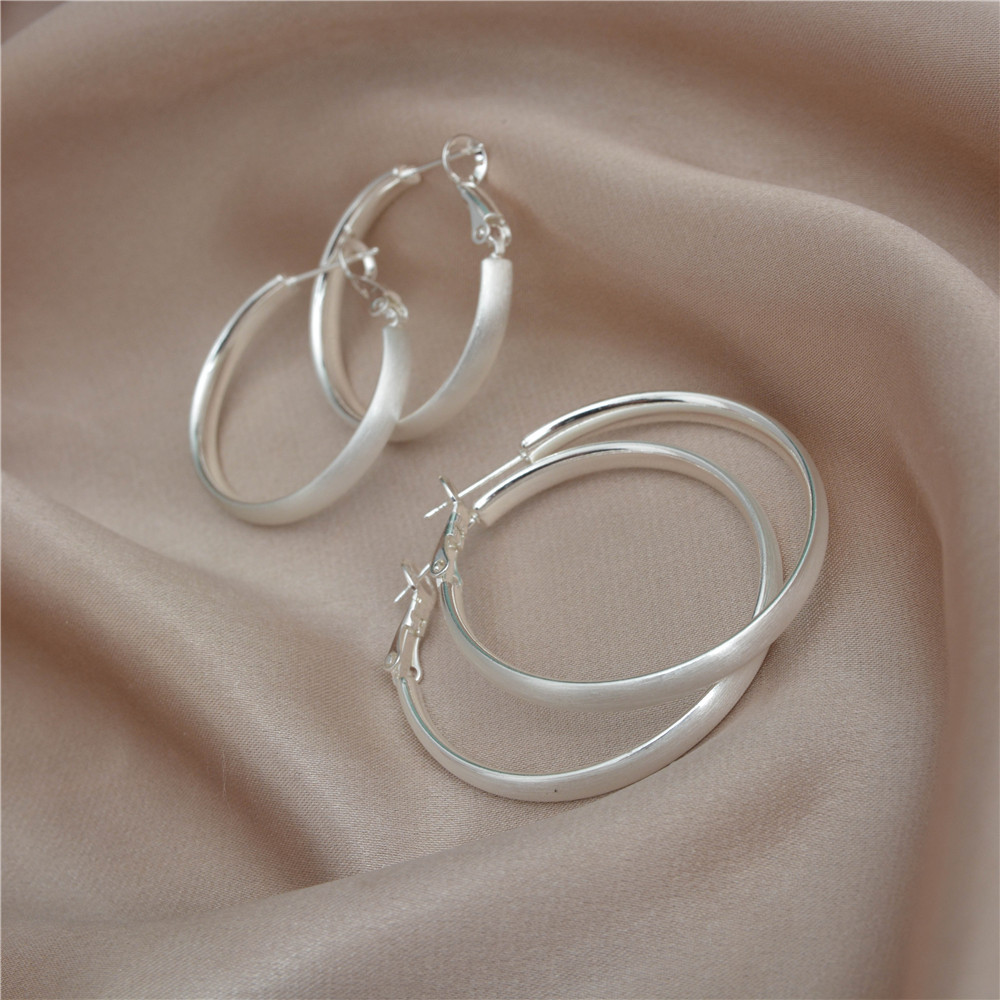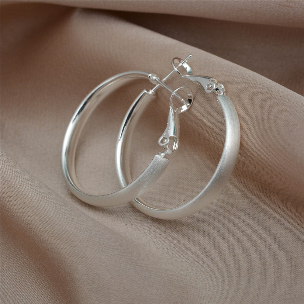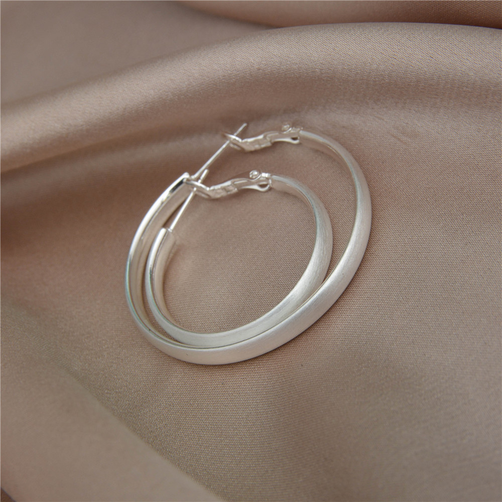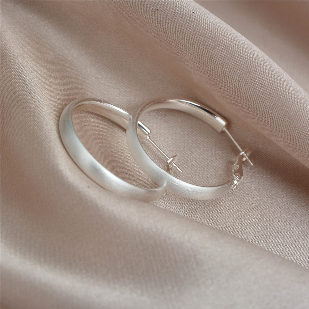 Simple Silver brushed round earring 925 silver needle plain ring white ring earring earring a frigid temperament earring