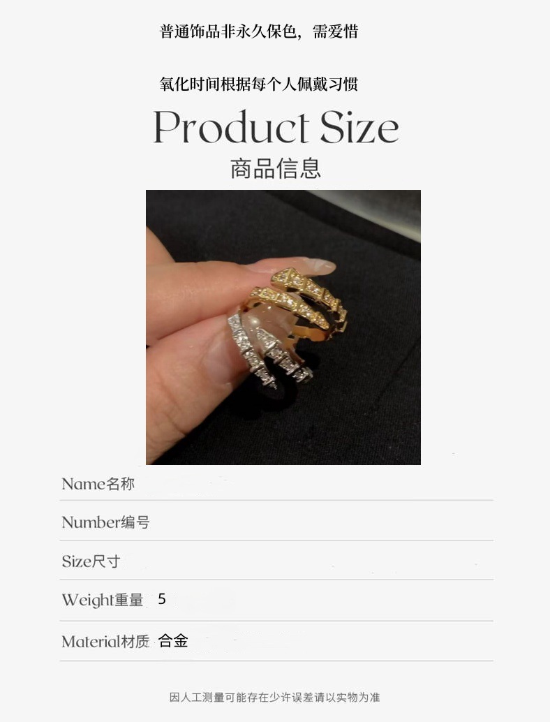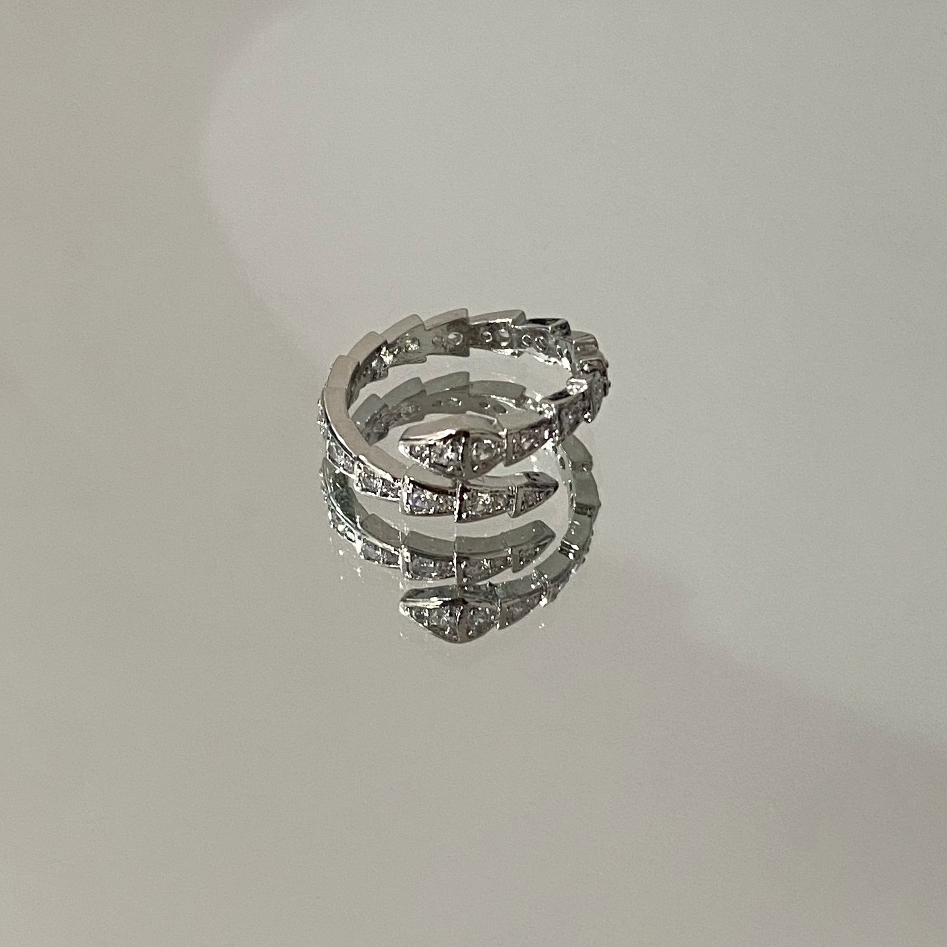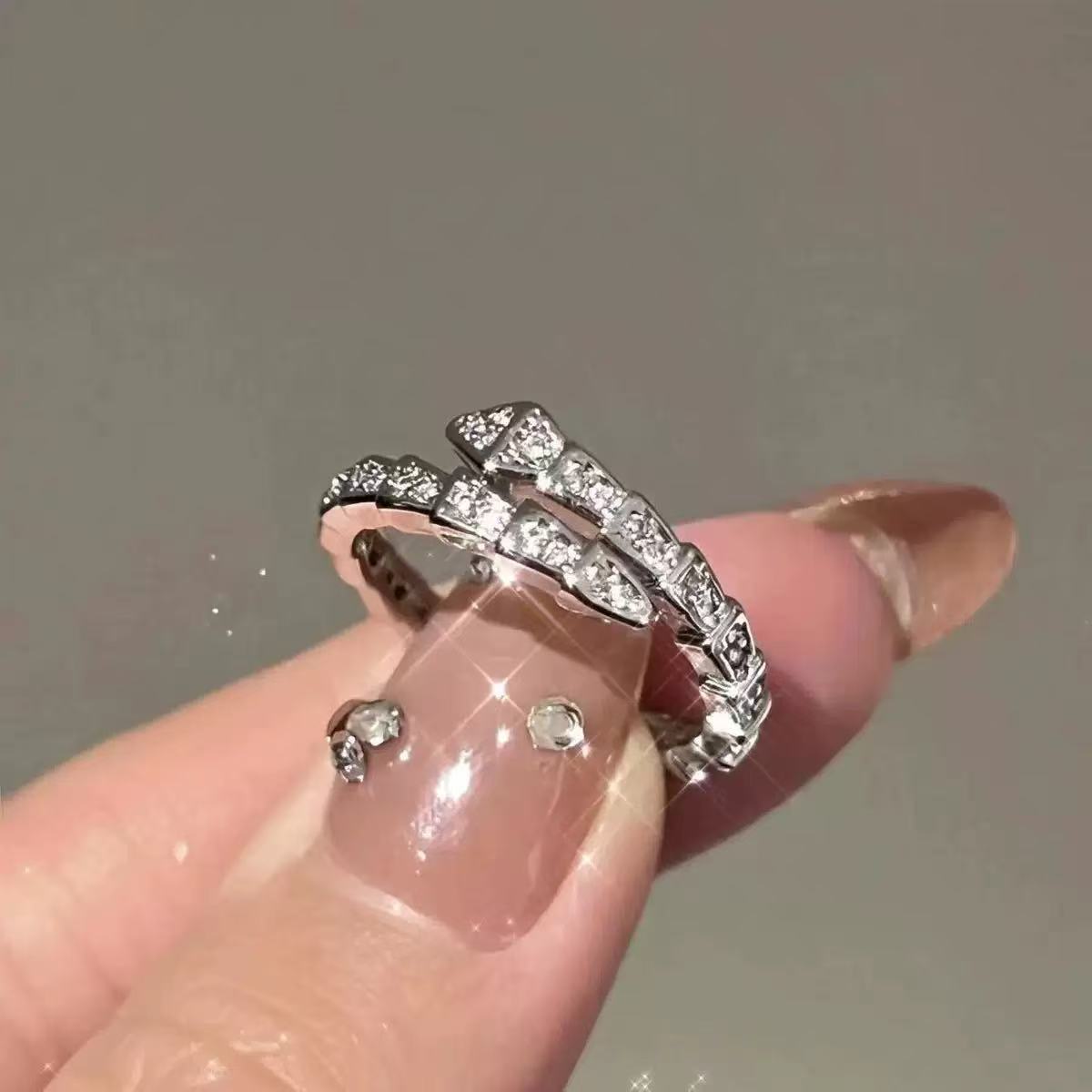 Baojia Full Diamond Opening Snake Ring Women's Ins Trendy Personality Niche Design Sense Light Luxury Cold Style Snake Bone Ring