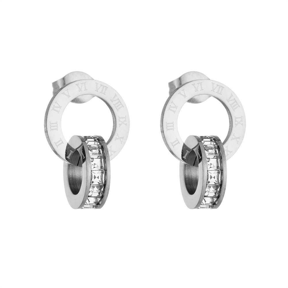 Simple Roman Numerals Full Diamond Titanium Steel Necklace Bracelet Ring Link Earrings All-match Clavicle Chain Jewelry Women's Set