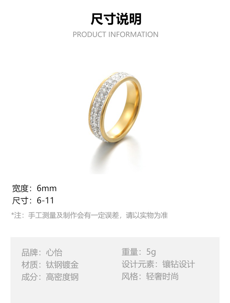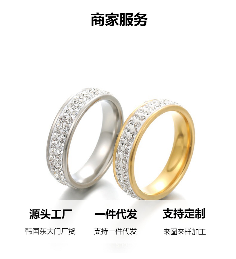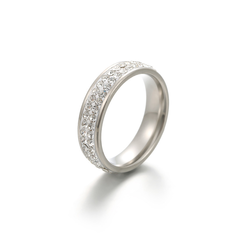 European and American Cross-Border 6mm Stainless Steel Double-Row Full Diamond Ring, Fashionable and Unique Ins-Style Couple's Minimalist Ring Accessory
