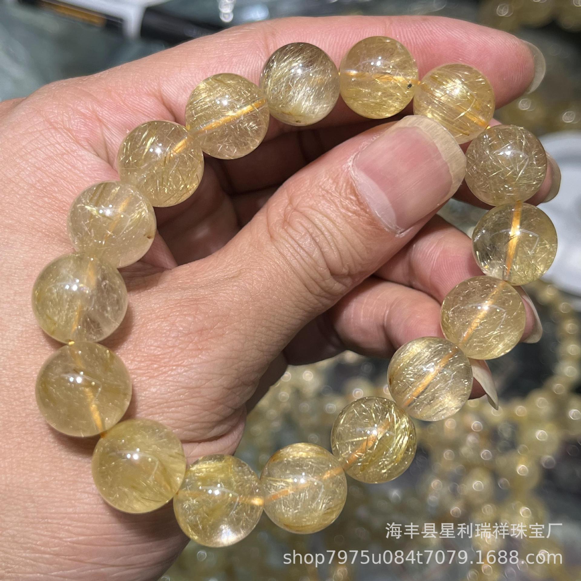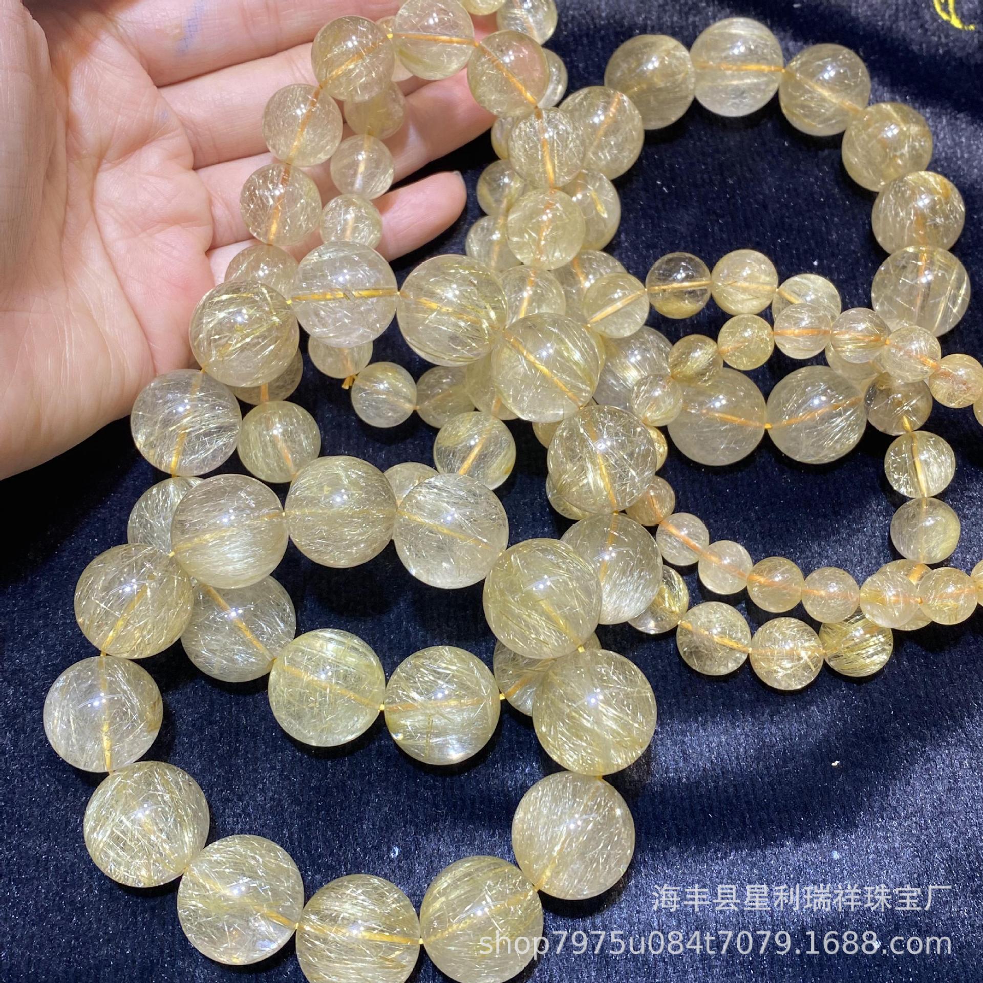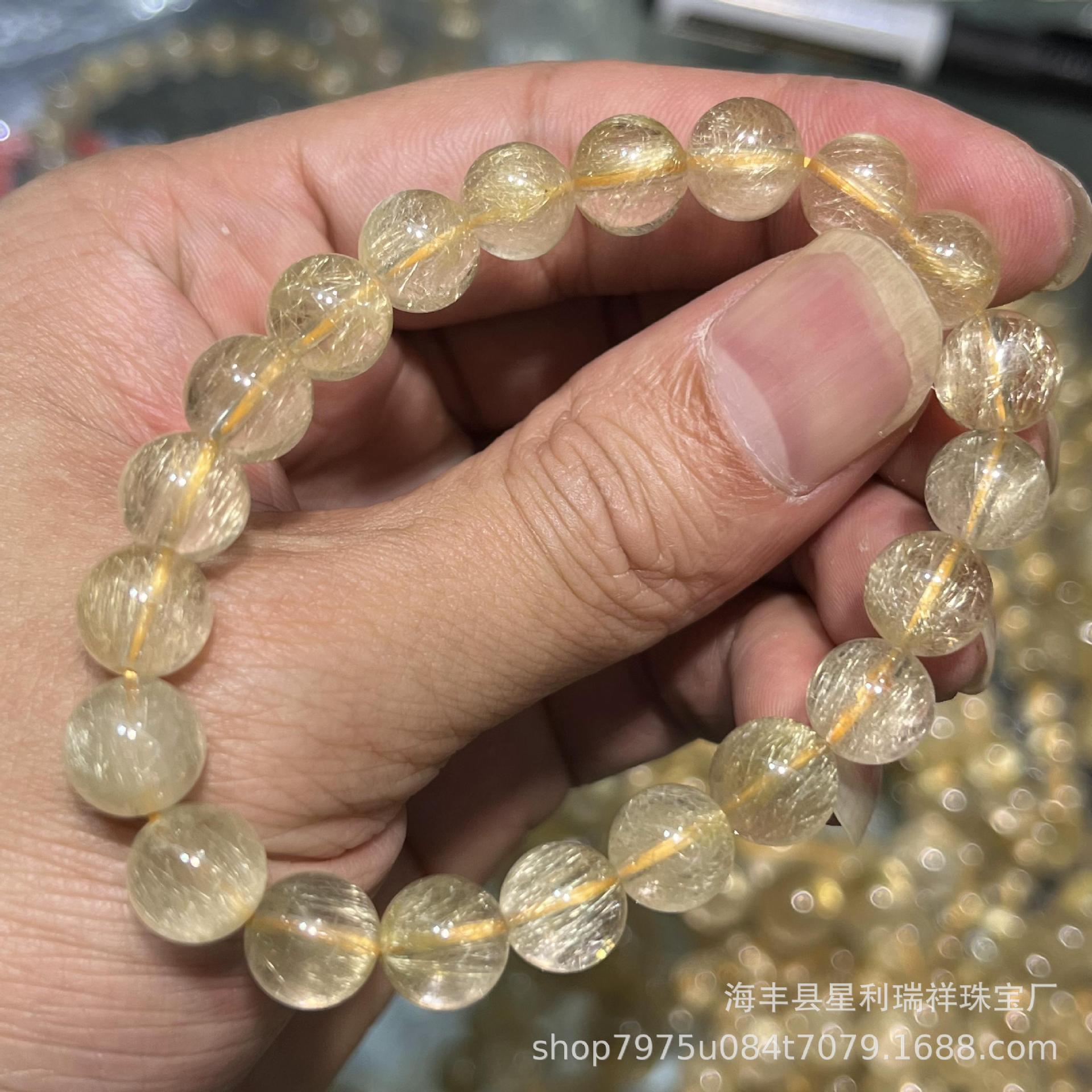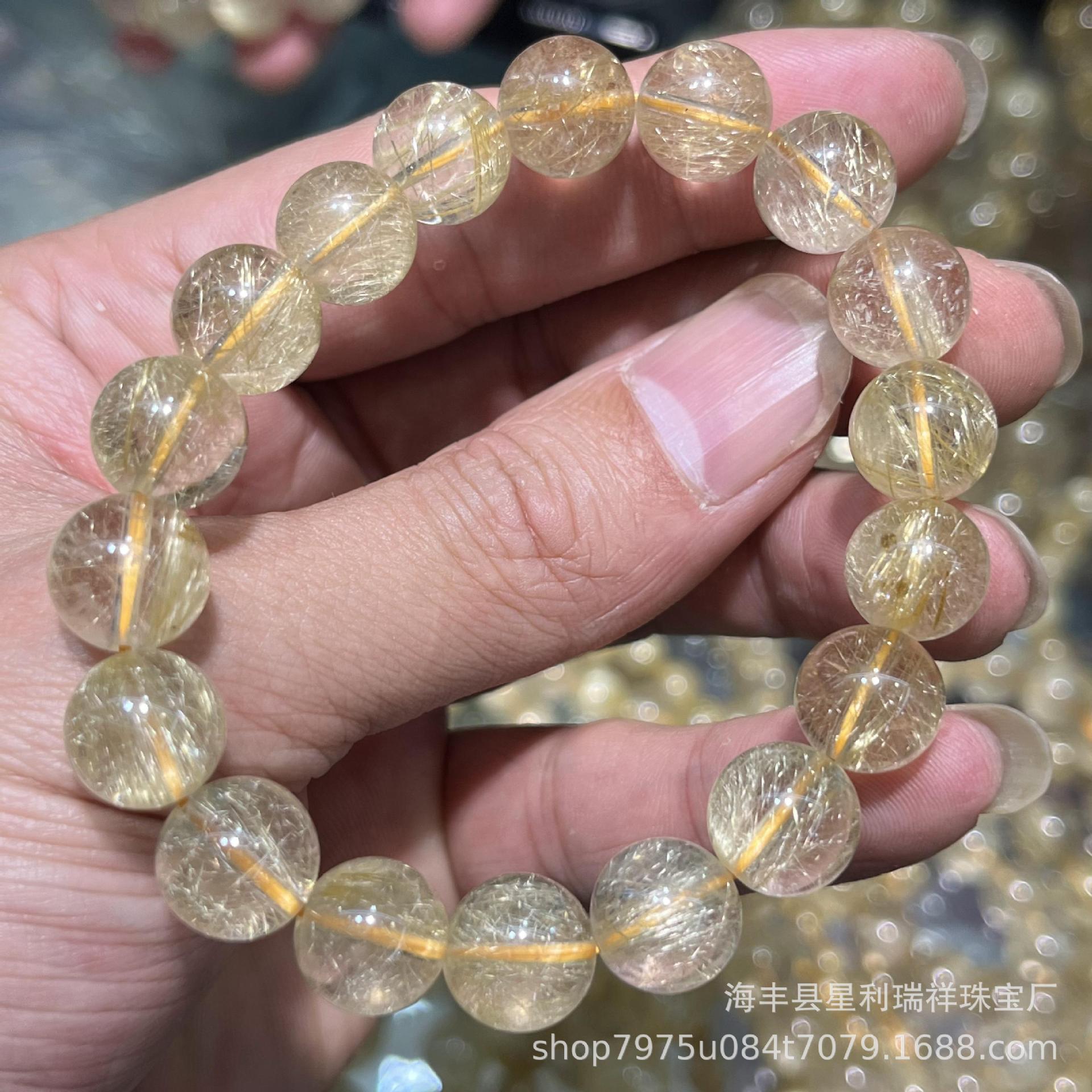 Natural Hair Crystal Bracelet Venus Gold Hair Crystal Buddha Bead Bracelet Gold Wire Full Transparent Clear Round Bead Crystal Bracelet