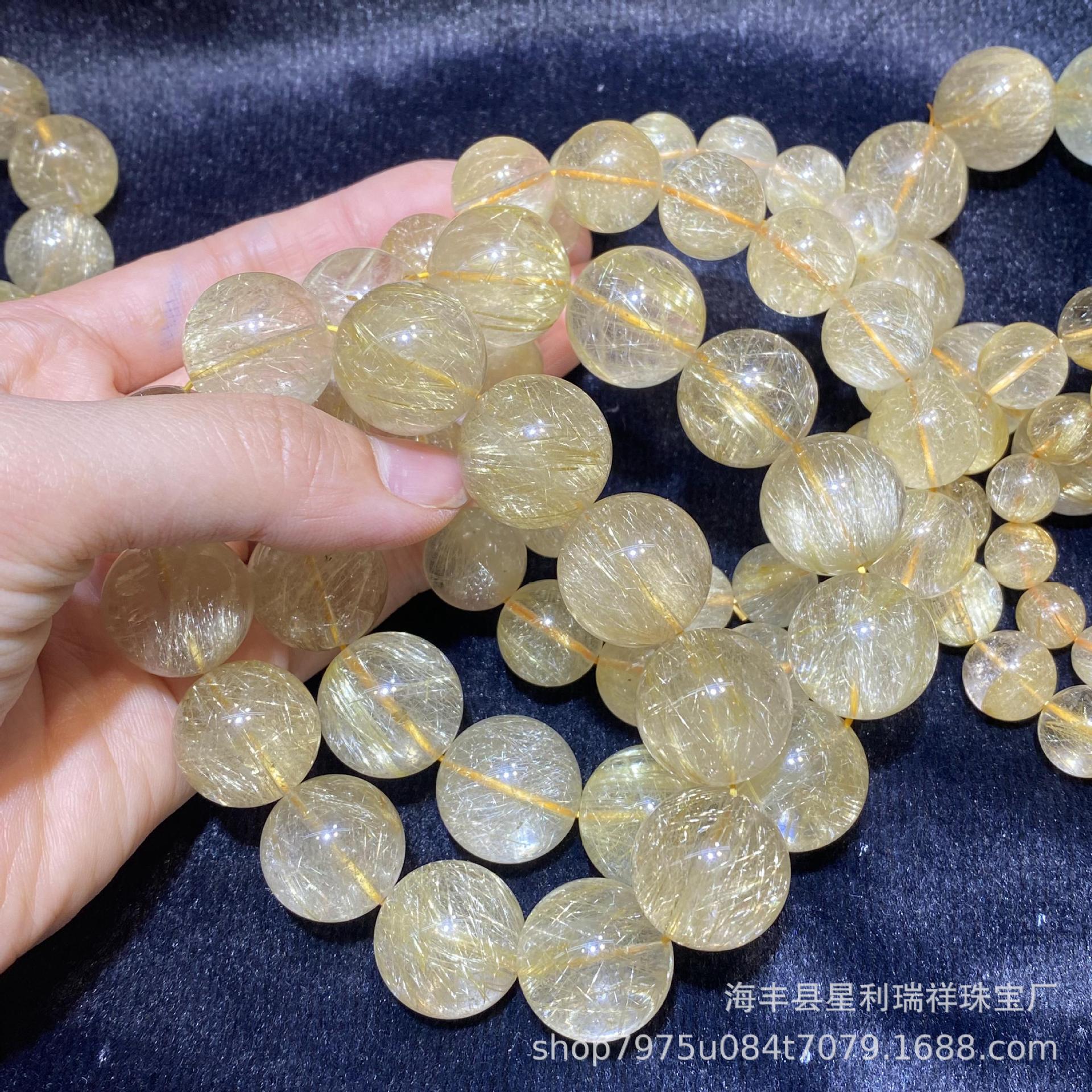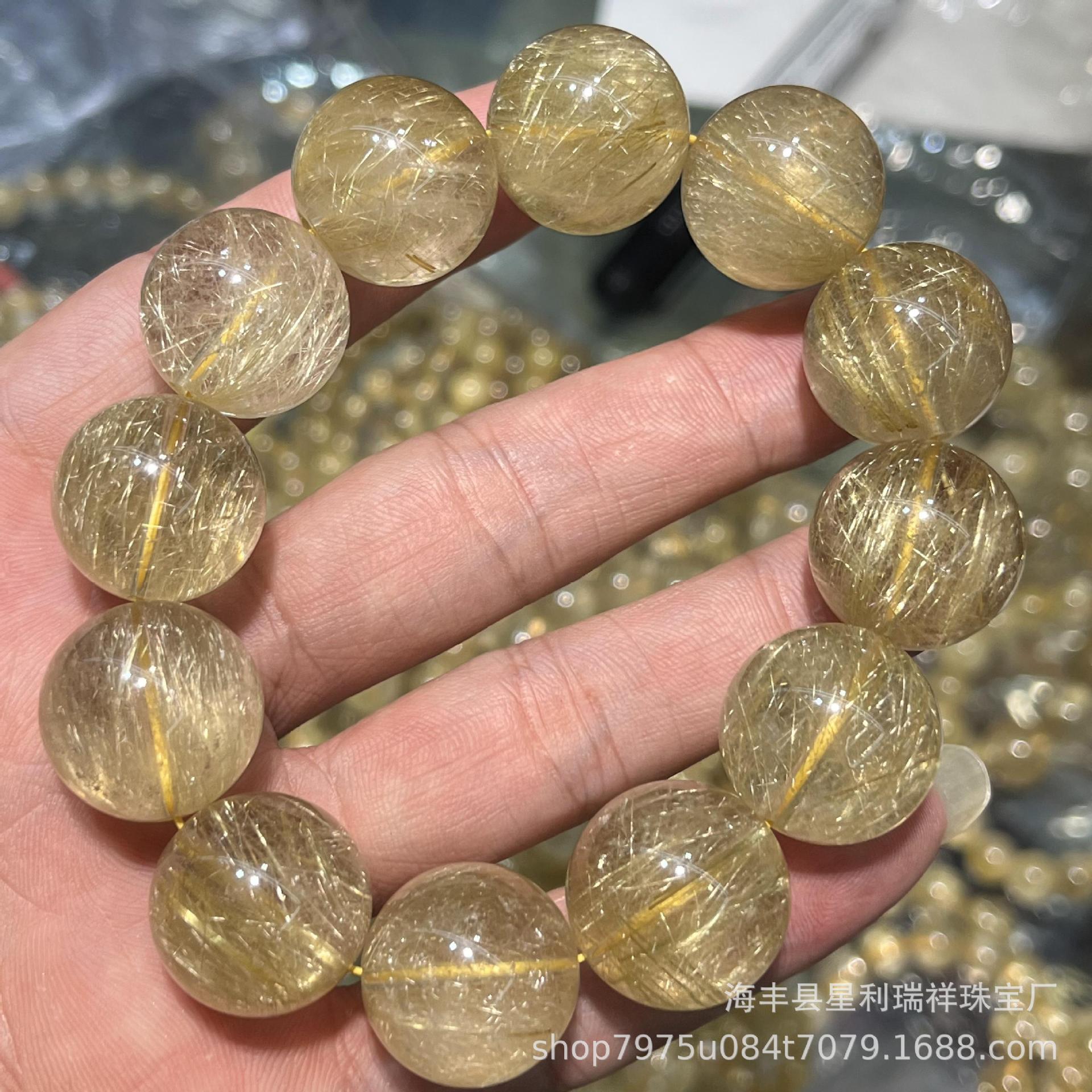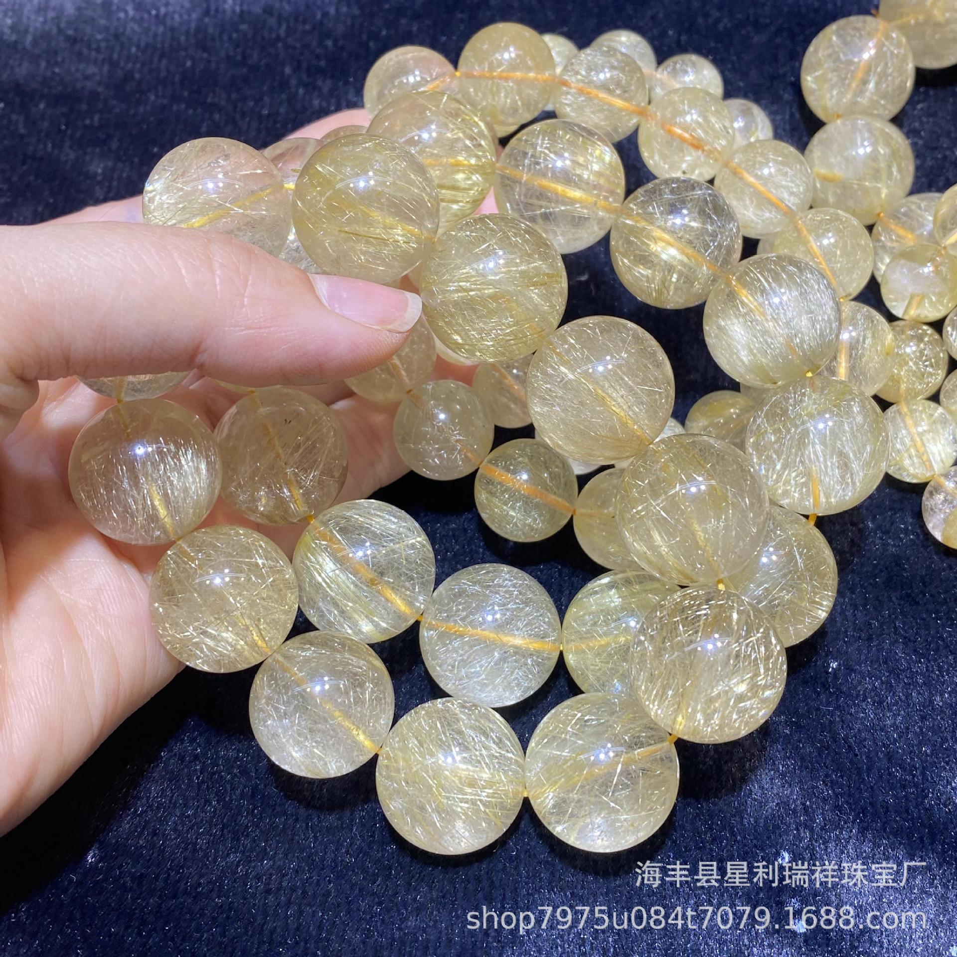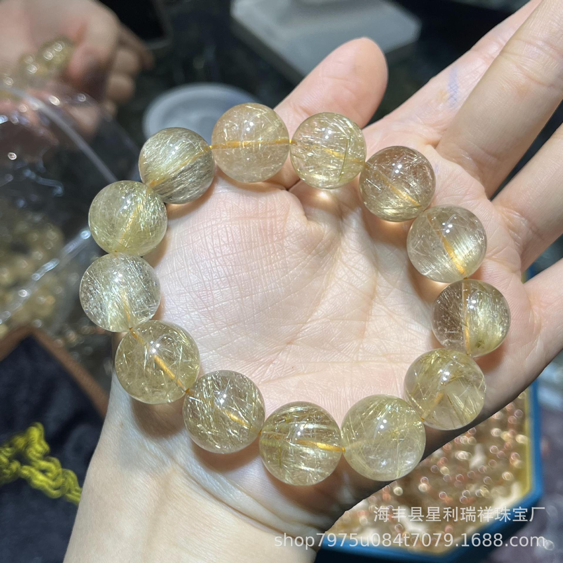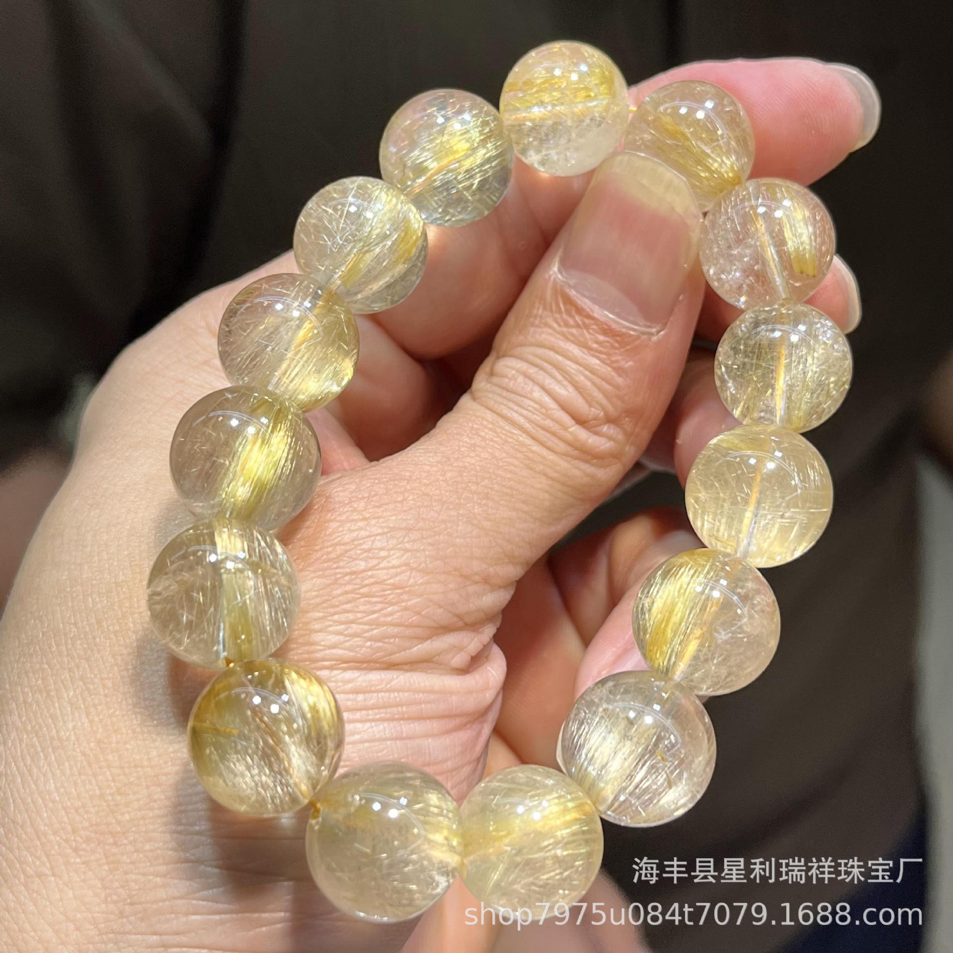 Natural Hair Crystal Bracelet Venus Gold Hair Crystal Buddha Bead Bracelet Gold Wire Full Transparent Clear Round Bead Crystal Bracelet