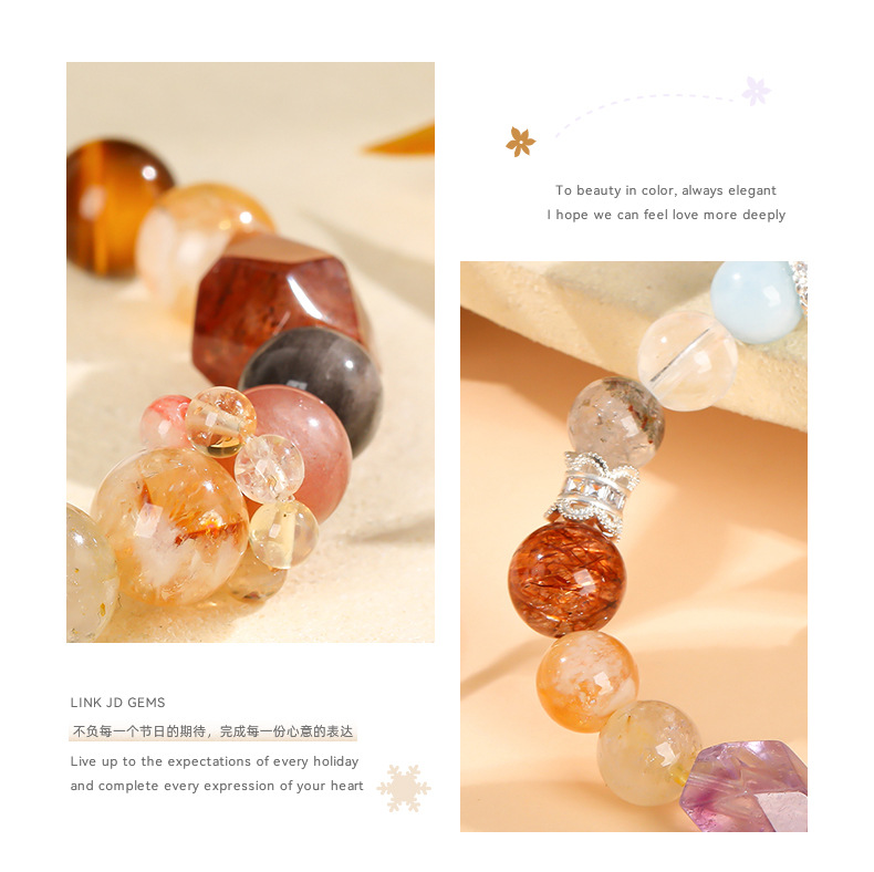 Color: Natural multi-gemstone crystal back cloud square heart sutra transfer bead bracelet