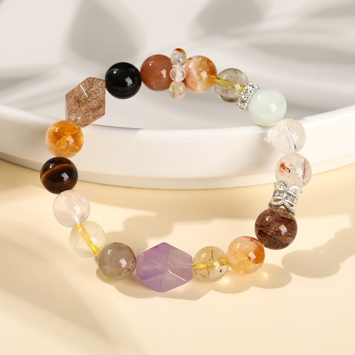 Color: Natural multi-gemstone crystal lemon pi xiu bracelet