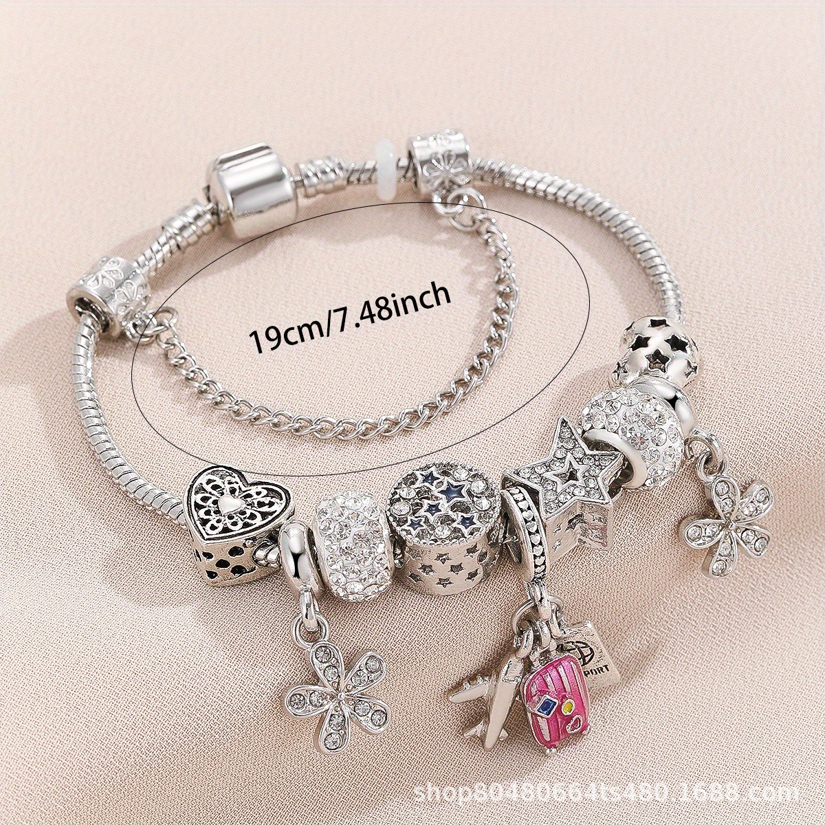 Panjia Bracelet European and American Cross-border DIY Beaded Bracelet Aircraft Suitcase Passport Pendant Rhinestone Explosive First Jewelry