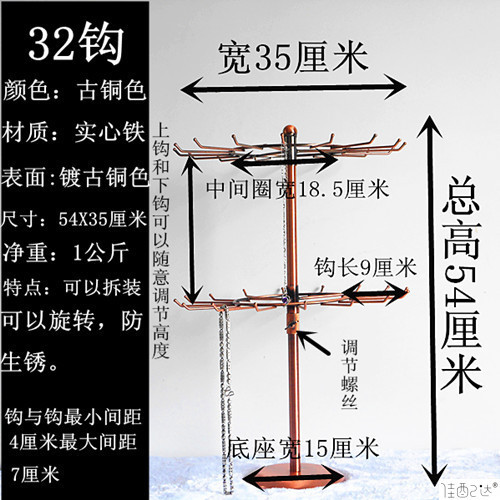 Color: 32 hooks, 4 layers, 57cm stainless steel color, adjustable✓