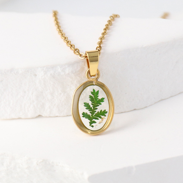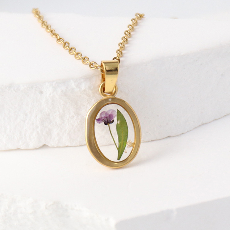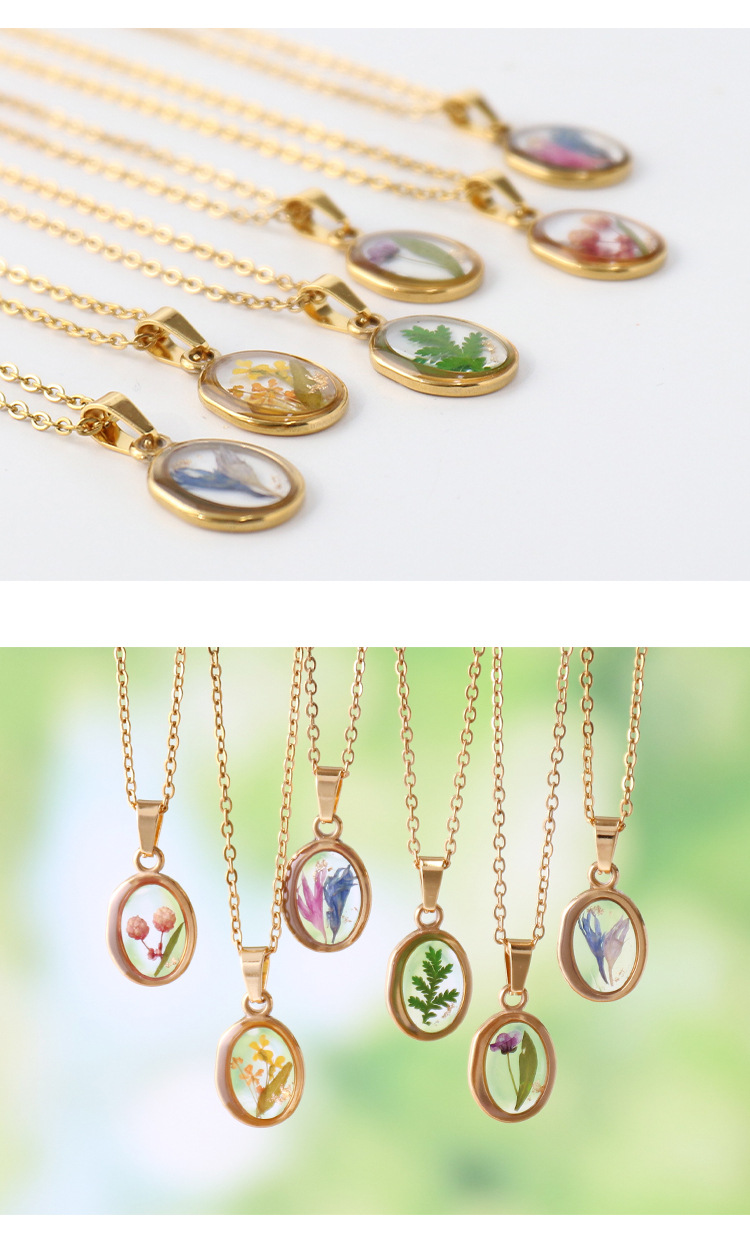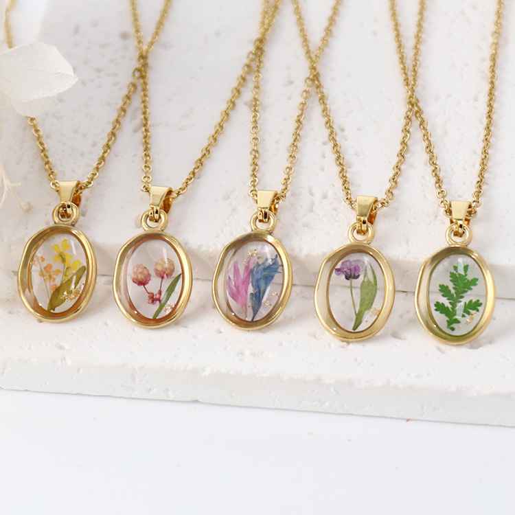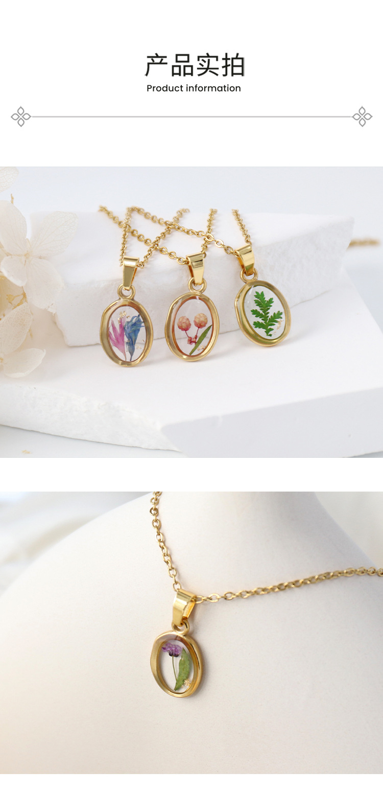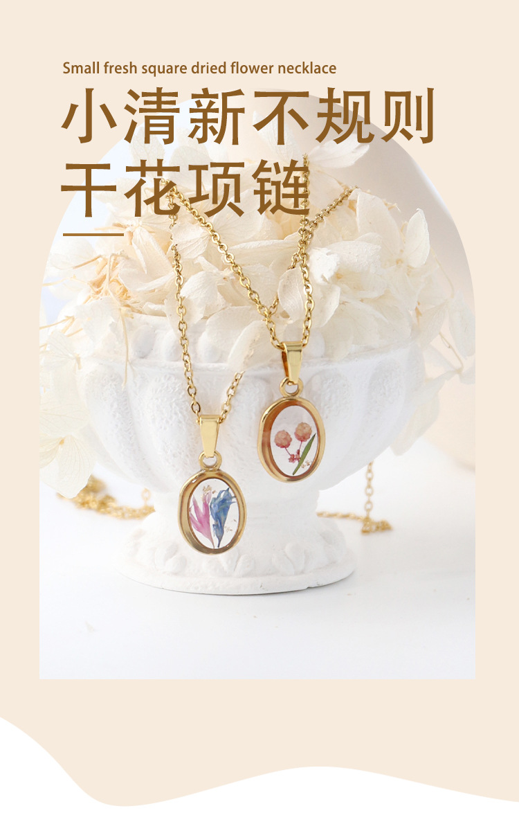Summer New Style True Flower Necklace Sweet Style Small Fresh Color True Flower Pendant Stainless Steel Resin Eternal Flower Jewelry