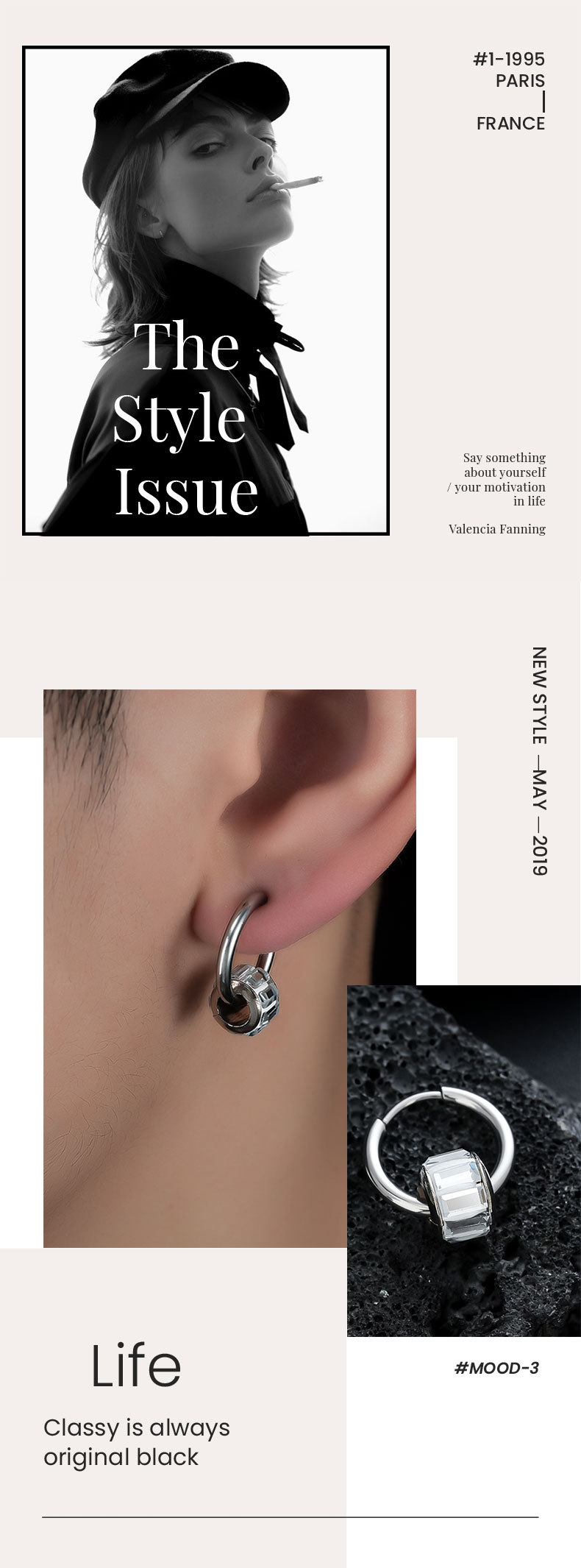 Zircon earrings men's high-end sense Joker classic fashion luxury earrings women's temperament personality jewelry wholesale