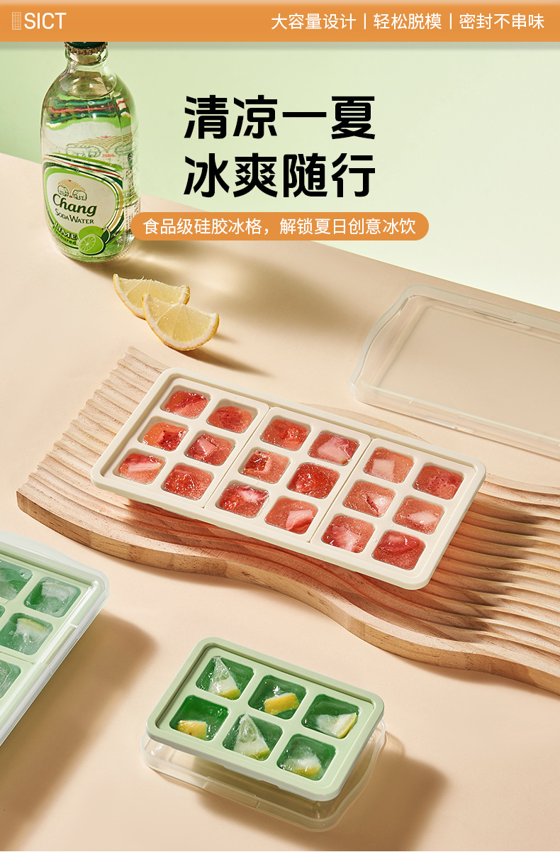New Soft Silicone Ice Cube Ice Cube Mold Food Grade Household Ice Film Press Ice Cube Grinder Small Ice Box with Lid