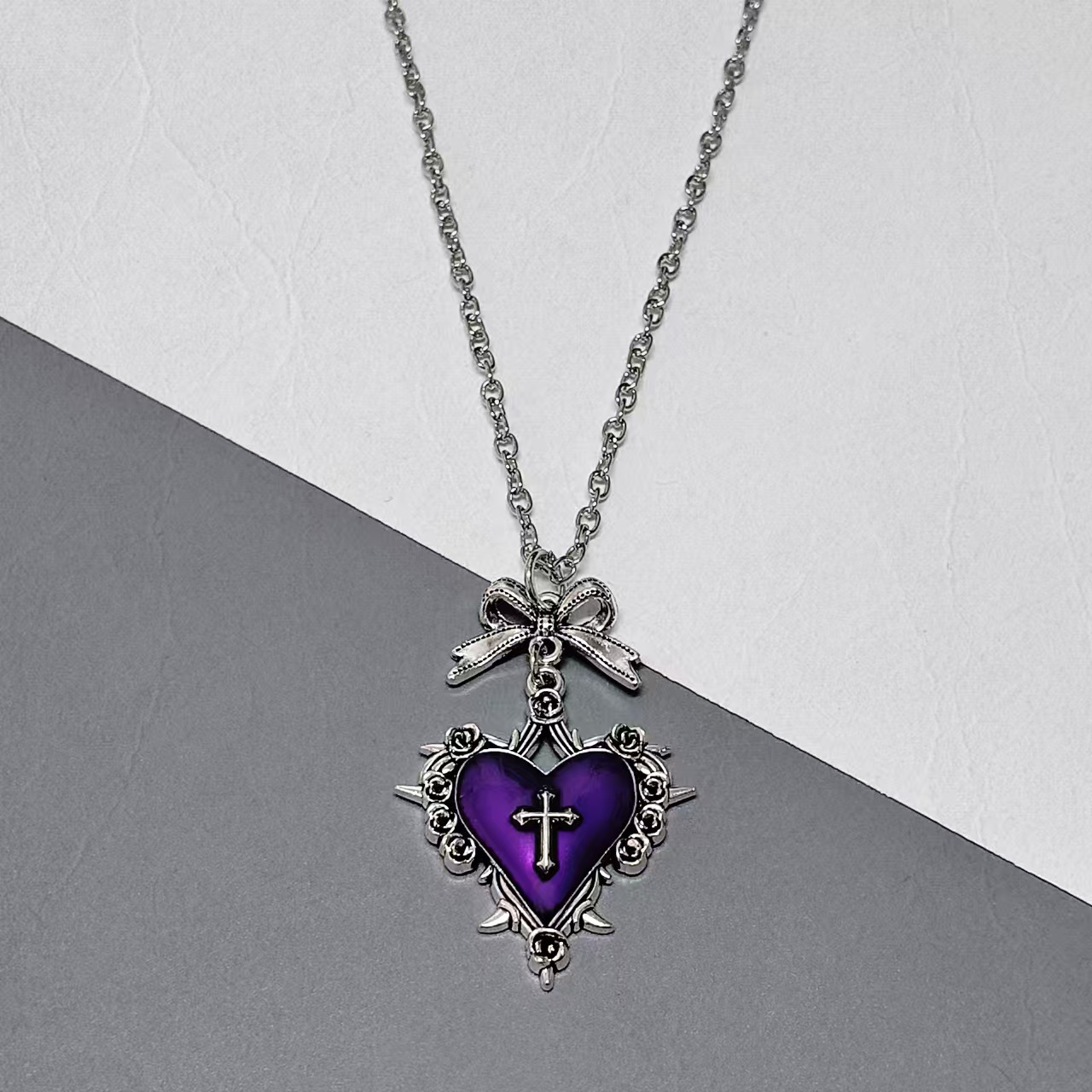 New Arrival Diablo Gothic Punk Red and Black Love Bow Cross Necklace Niche Ins Vintage Collarbone Chain