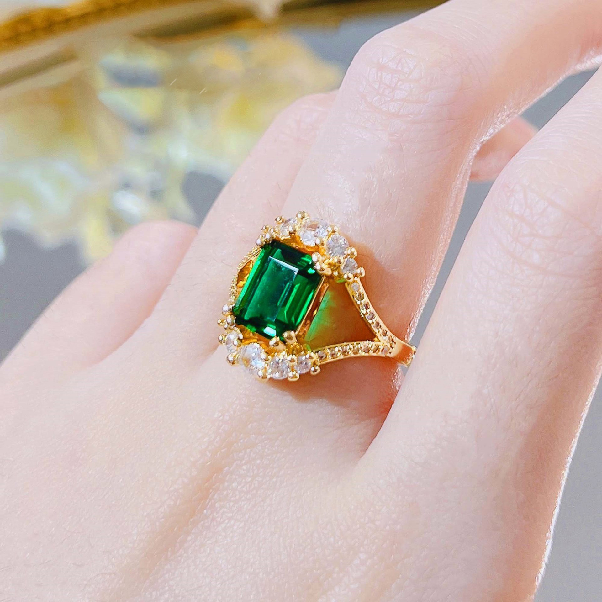Goddess's Sighs Imitation Natural Zambian Emerald Ring Princess 4 karat Square Green Diamond Ring