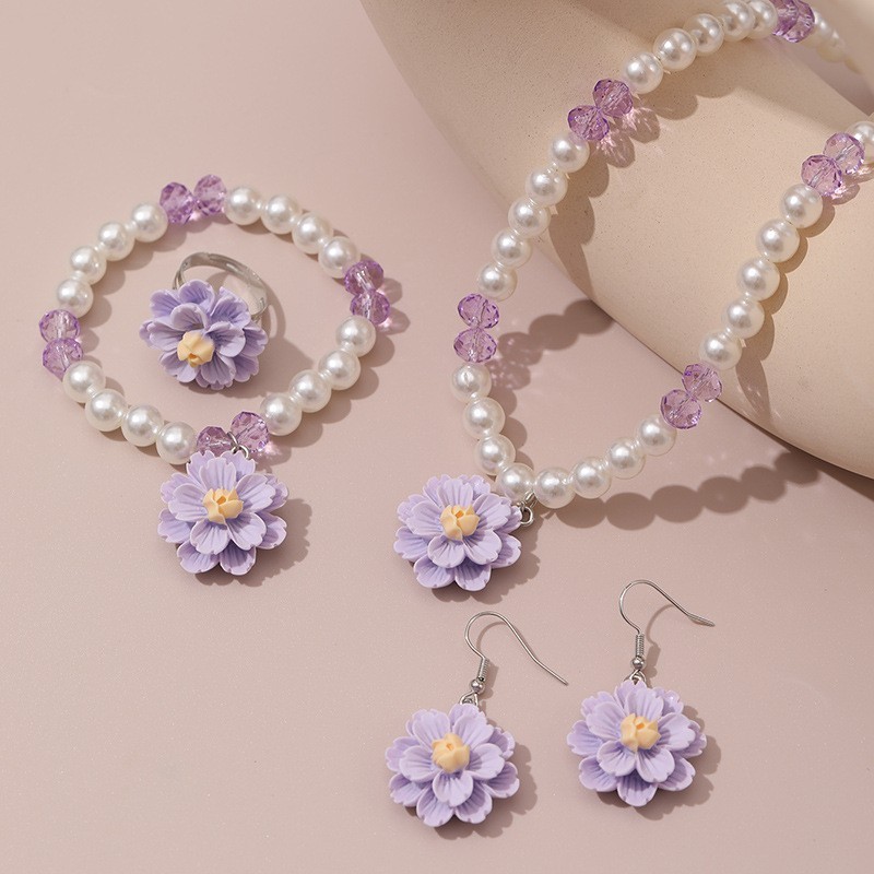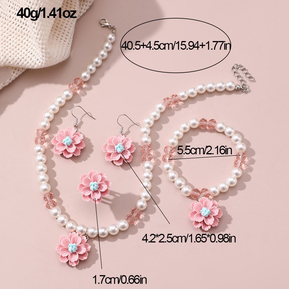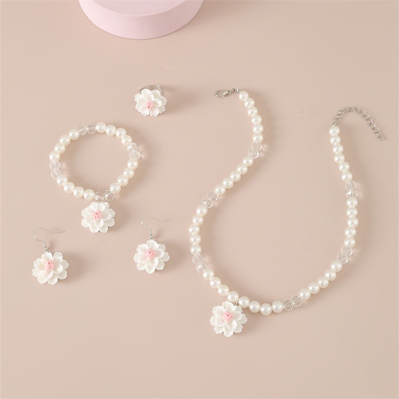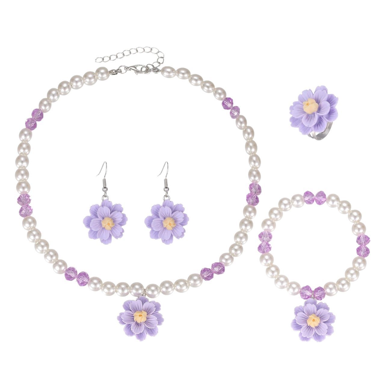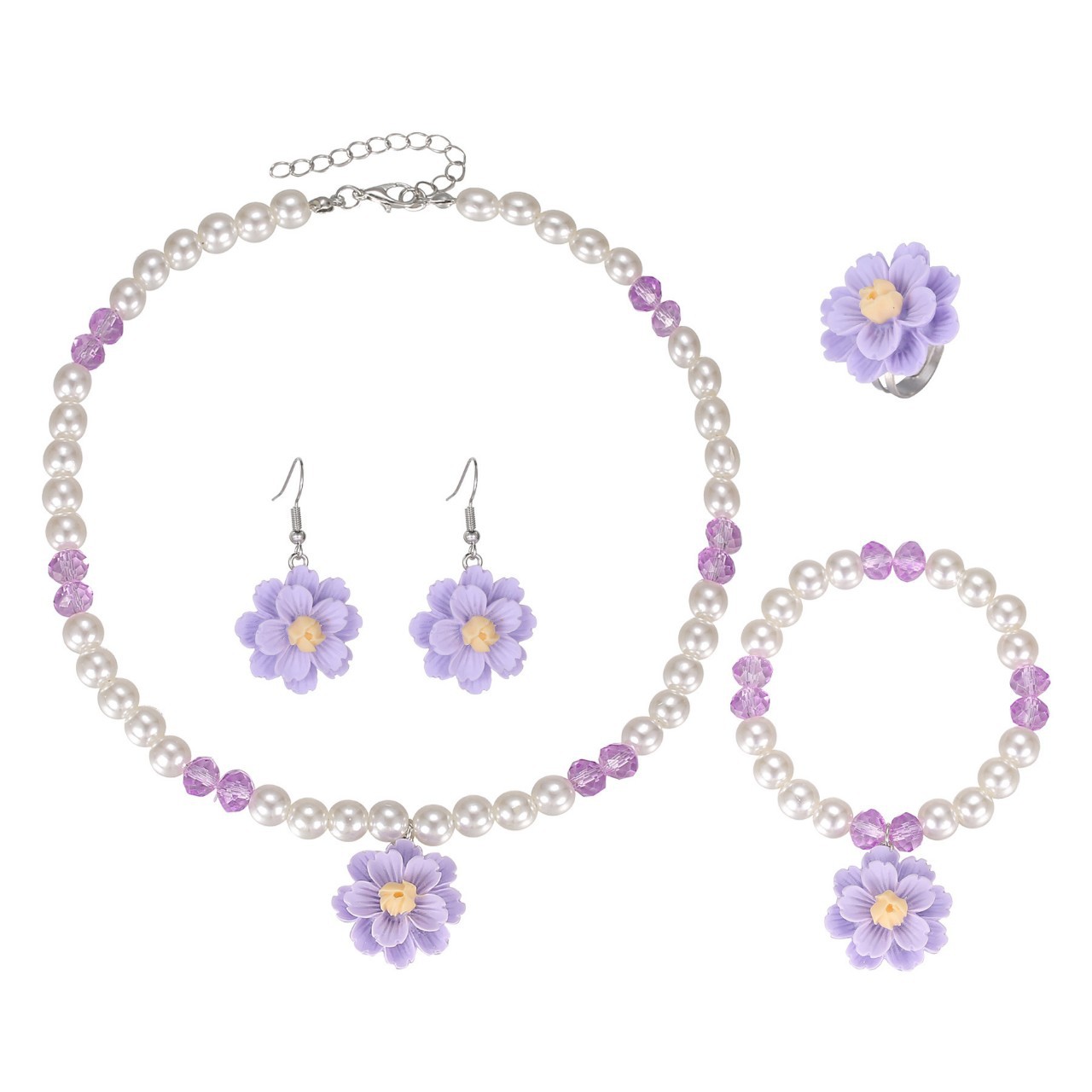 Four-piece cross-border hot earrings cute fresh necklace pearl flower pendant 2025 new children's earrings