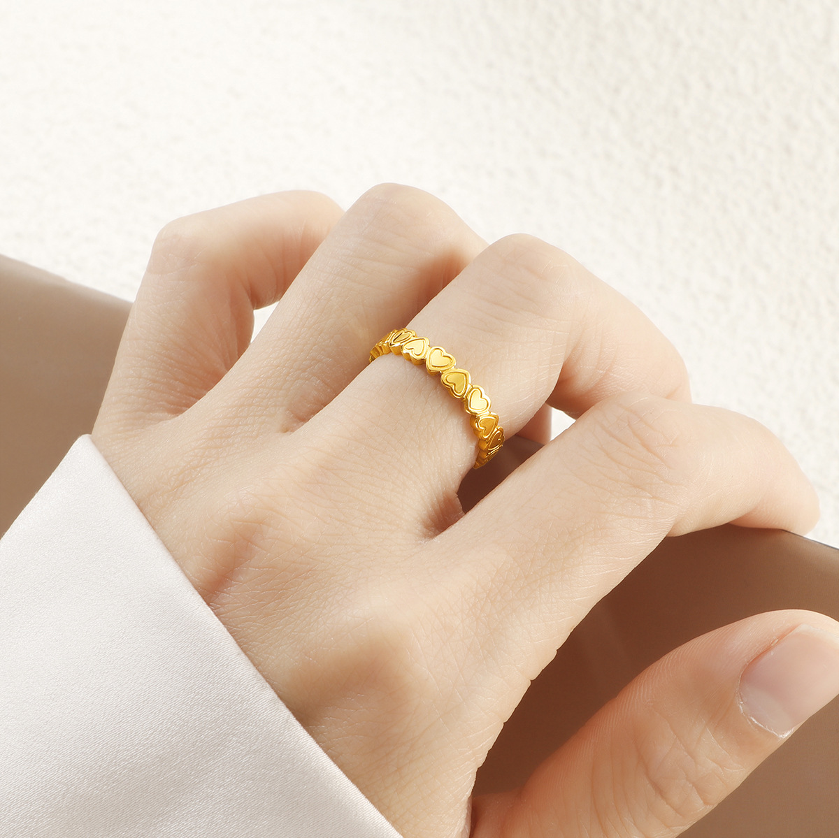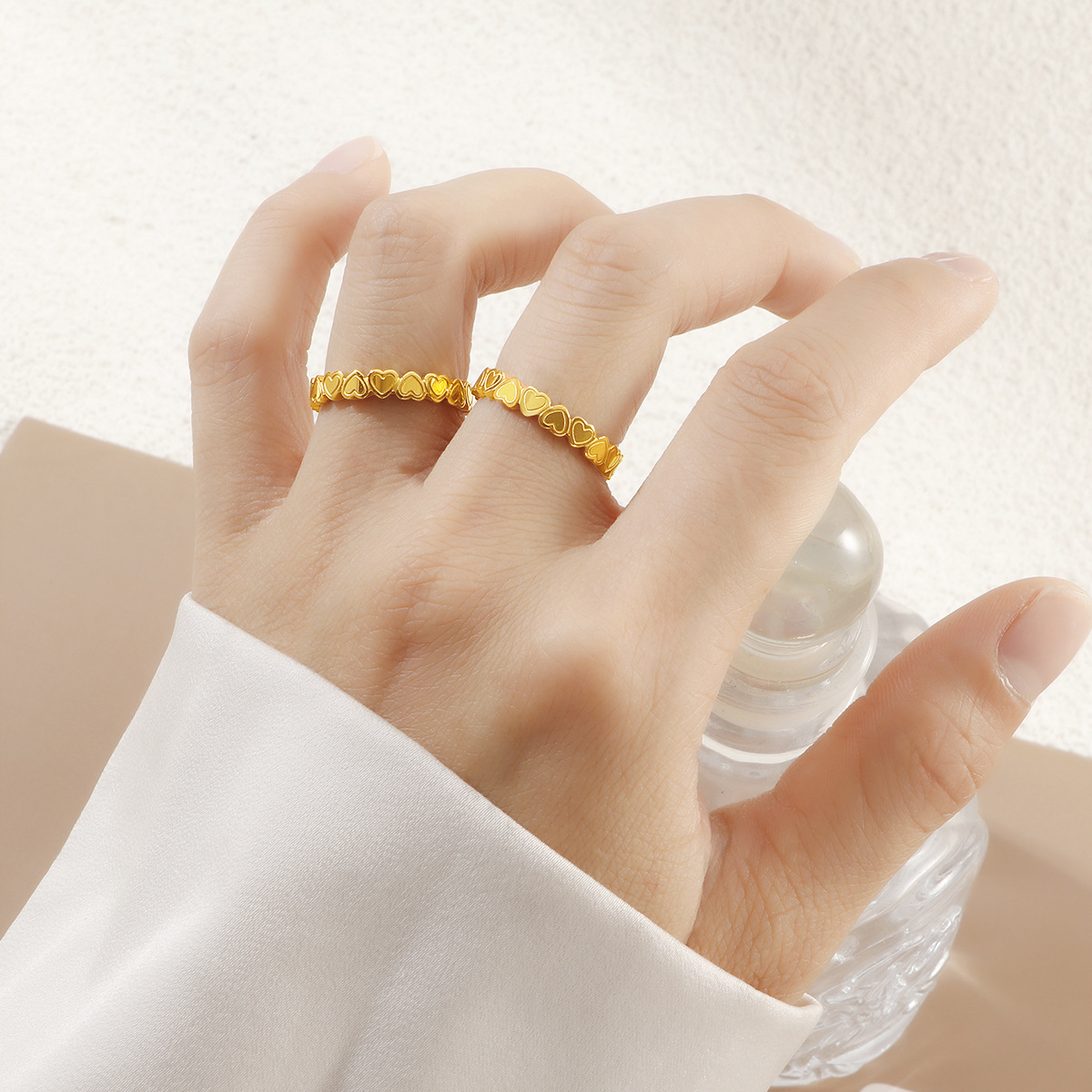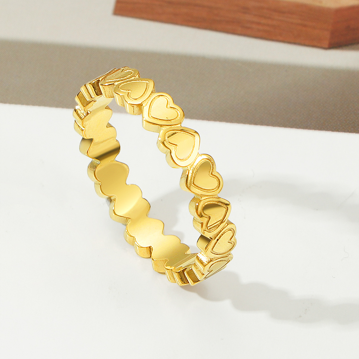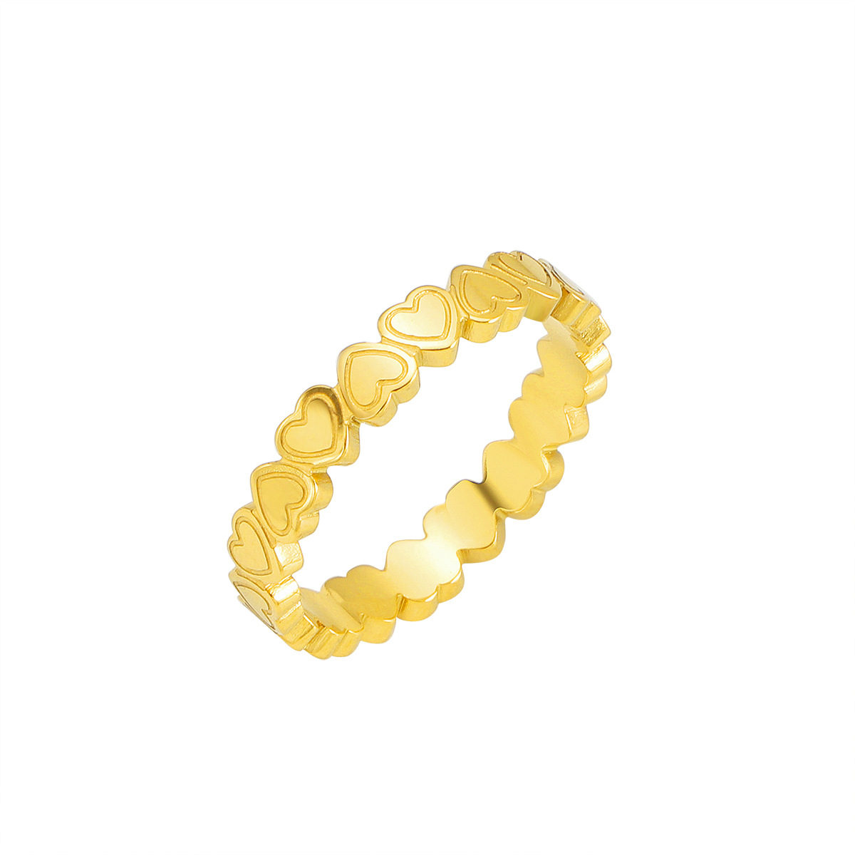 Japanese and Korean Explosions Love Full Circle Golden Ring Titanium Steel No Falling Light Luxury Niche Design Elegant Peach Heart Ring for Women