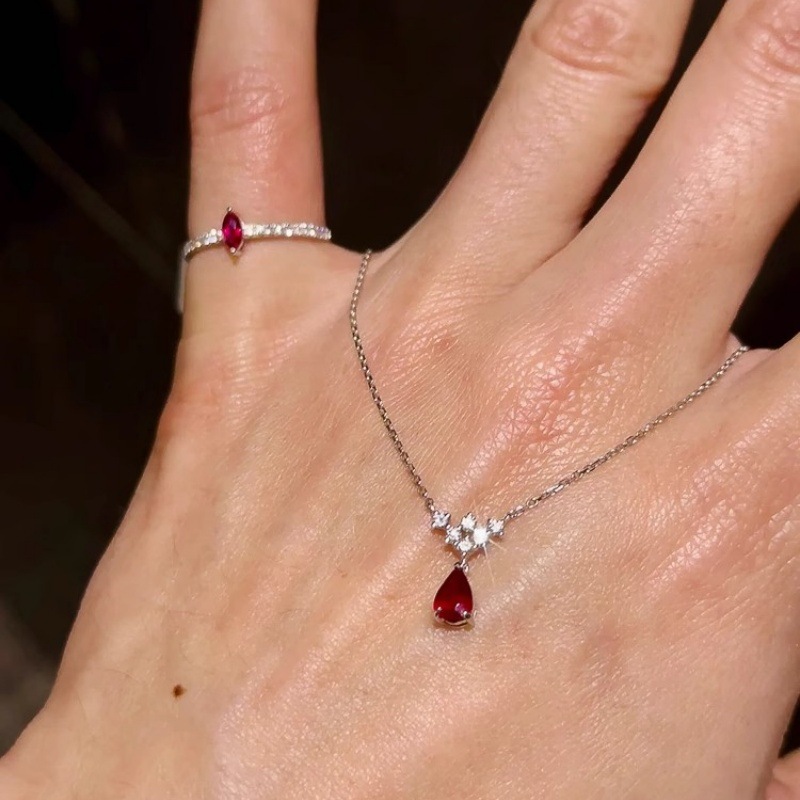 Red Sand Mole Mermaid Tears Water Drop Necklace Light Luxury Niche Girls Ring New High Luxury Banquet Style Ball Accessories