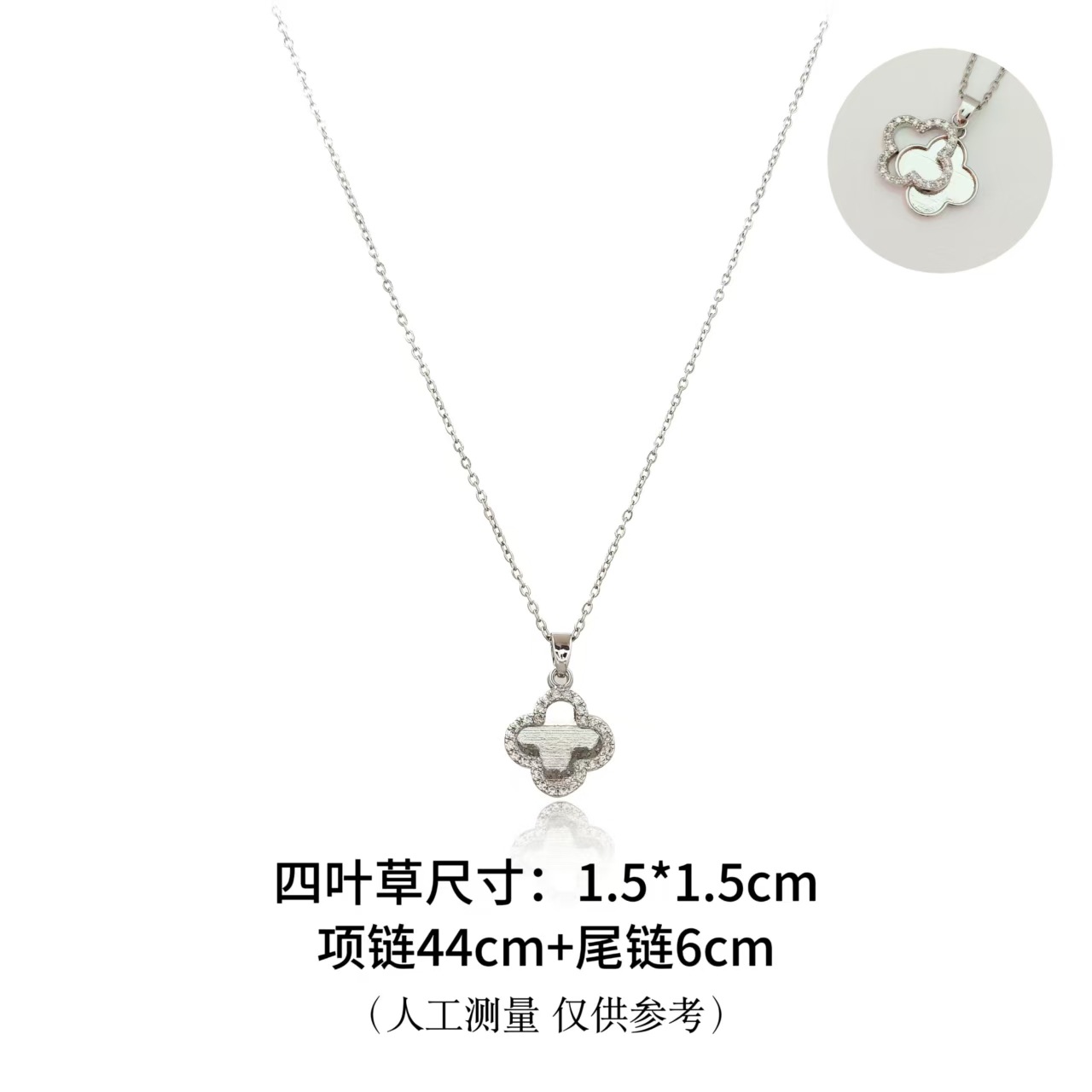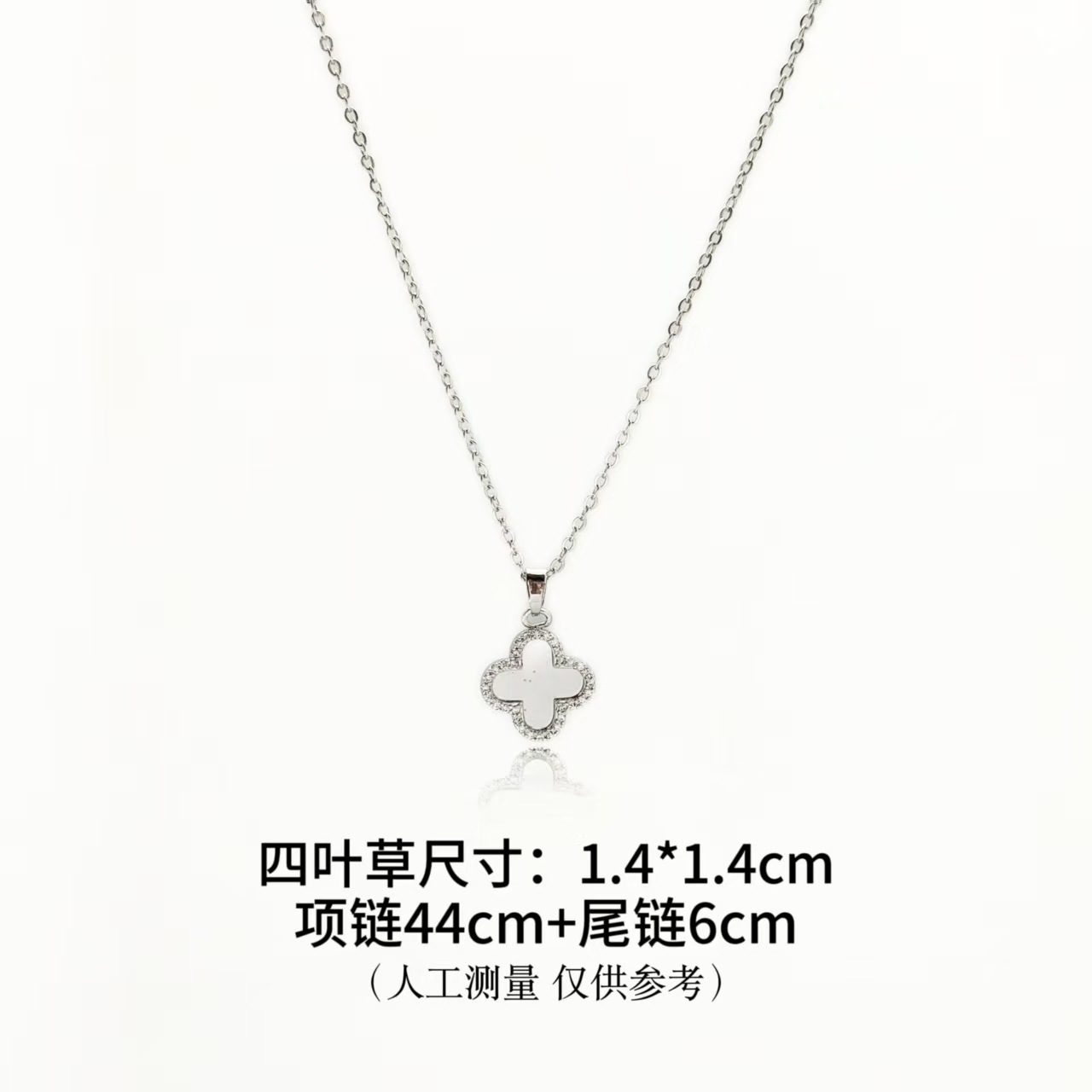 Color: #14 (stainless steel + copper) dot diamond four-leaf clover necklace - steel color