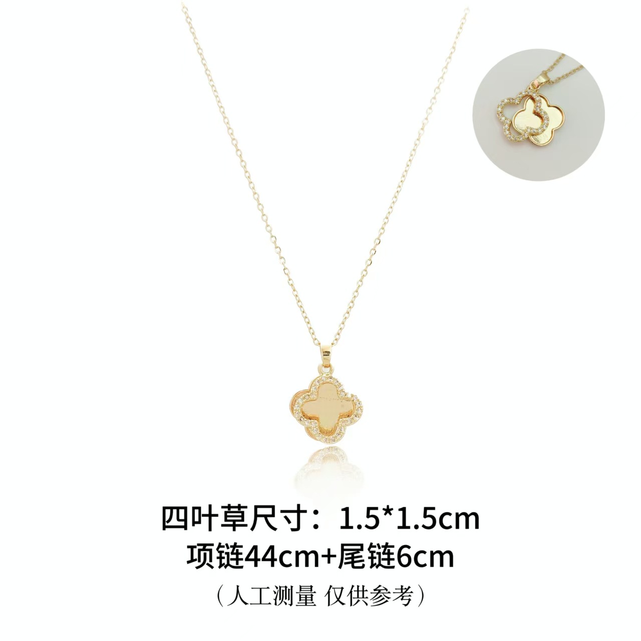 Color: #25 (stainless steel + copper) double four-leaf clover necklace base-gold