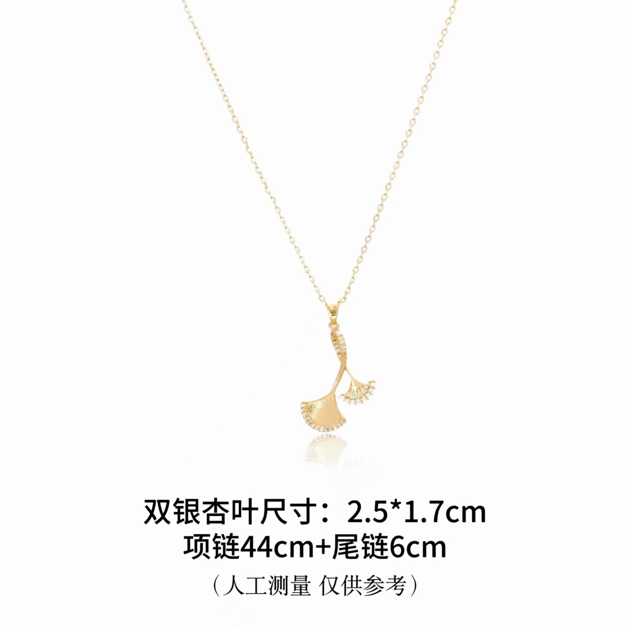 Color: #29 (stainless steel + copper) double ginkgo leaf necklace base - gold tone