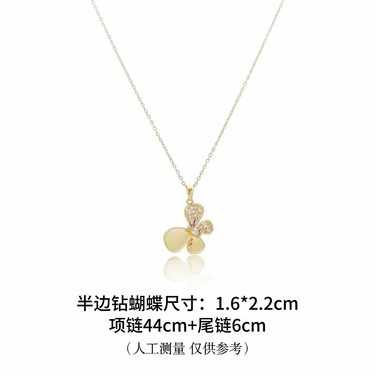 Color: #23 (stainless steel + copper) half diamond butterfly necklace base - gold