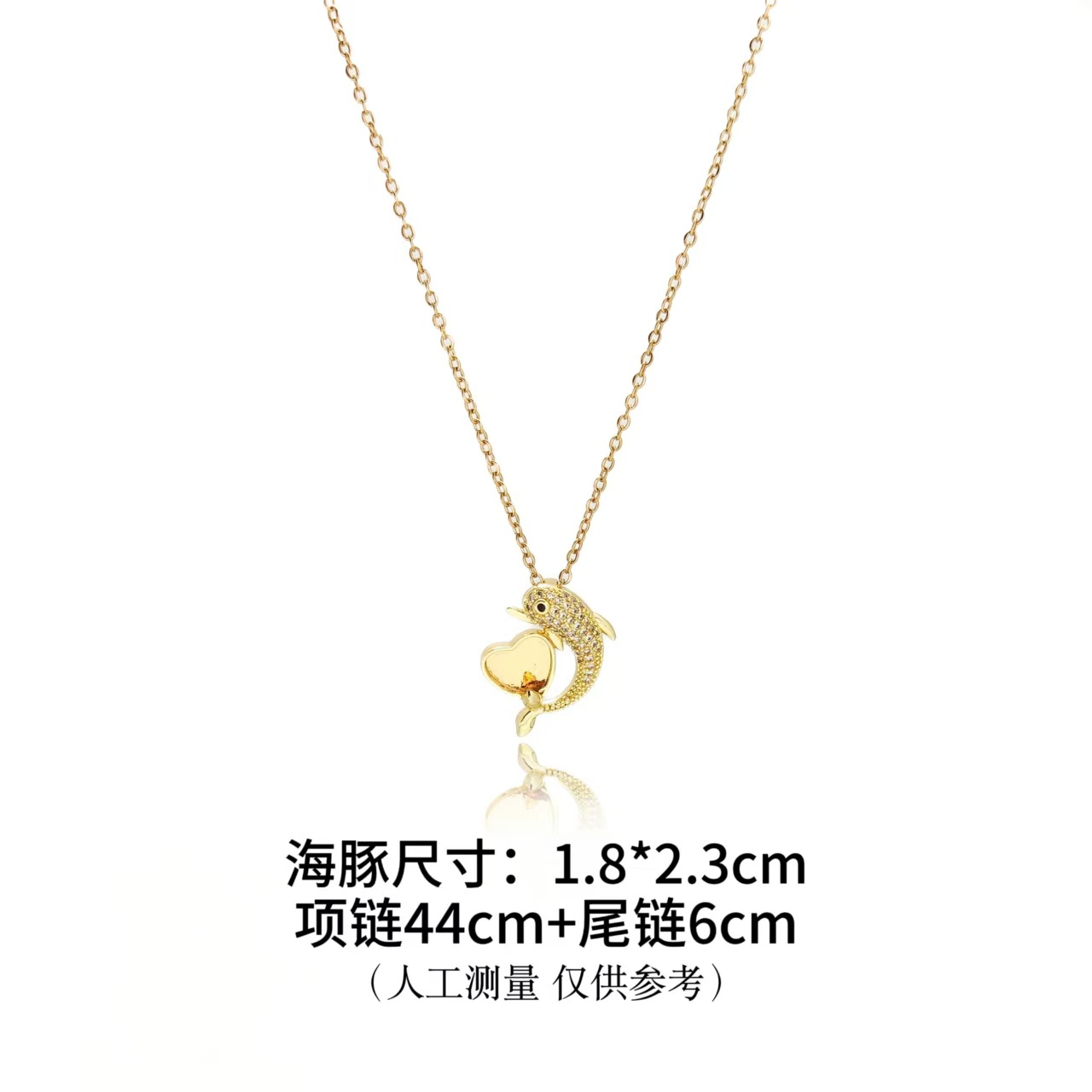 Color: #9 (stainless steel + copper) dolphin necklace-gold