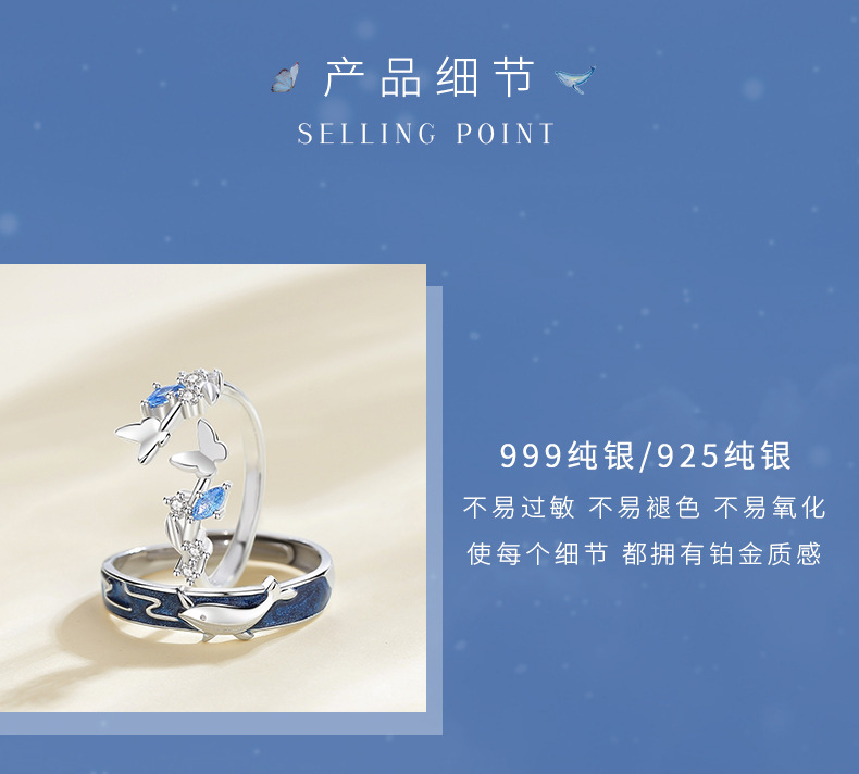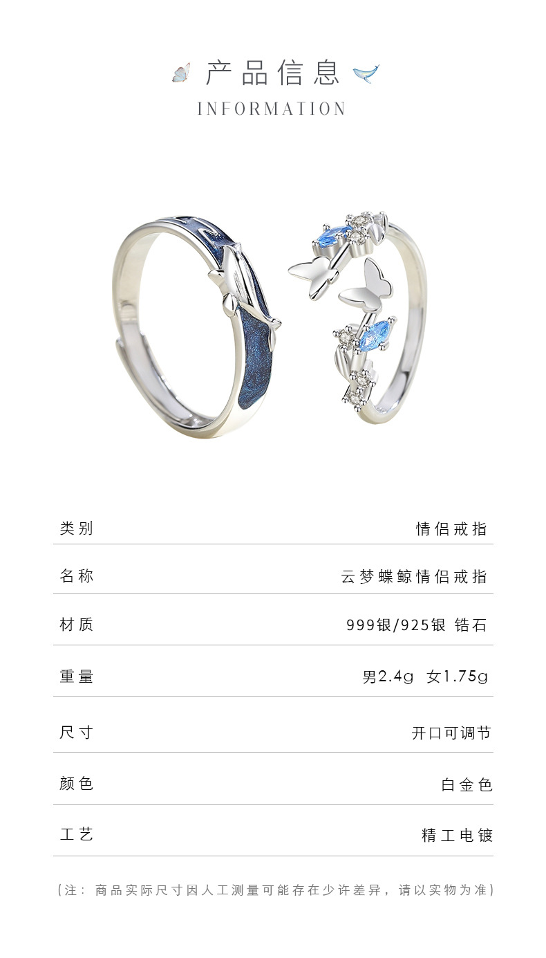Color: 999 sterling silver yunmeng butterfly whale ring for women