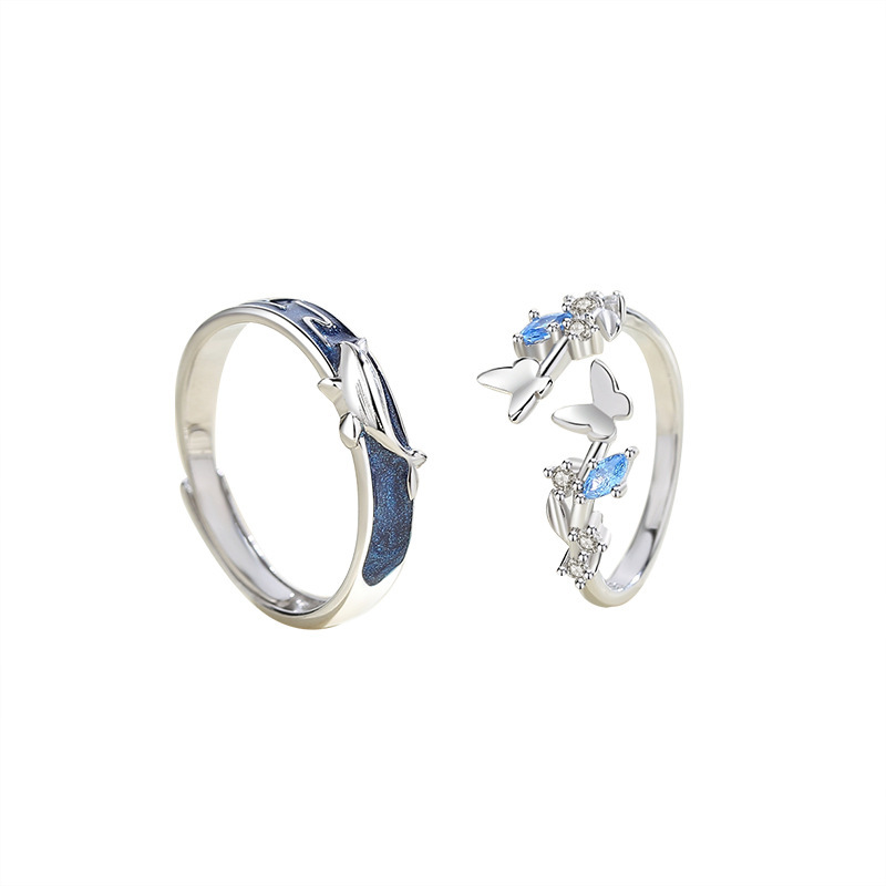 Color: 925 sterling silver yunmeng butterfly whale ring for women