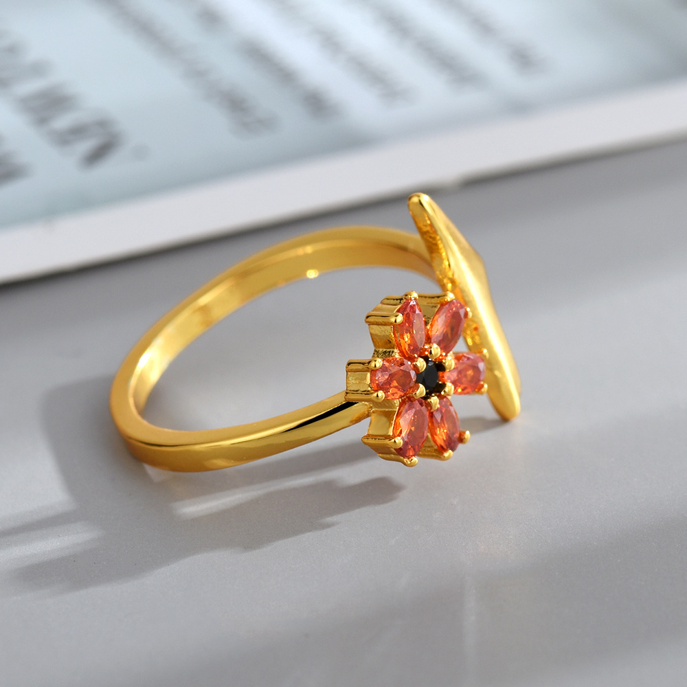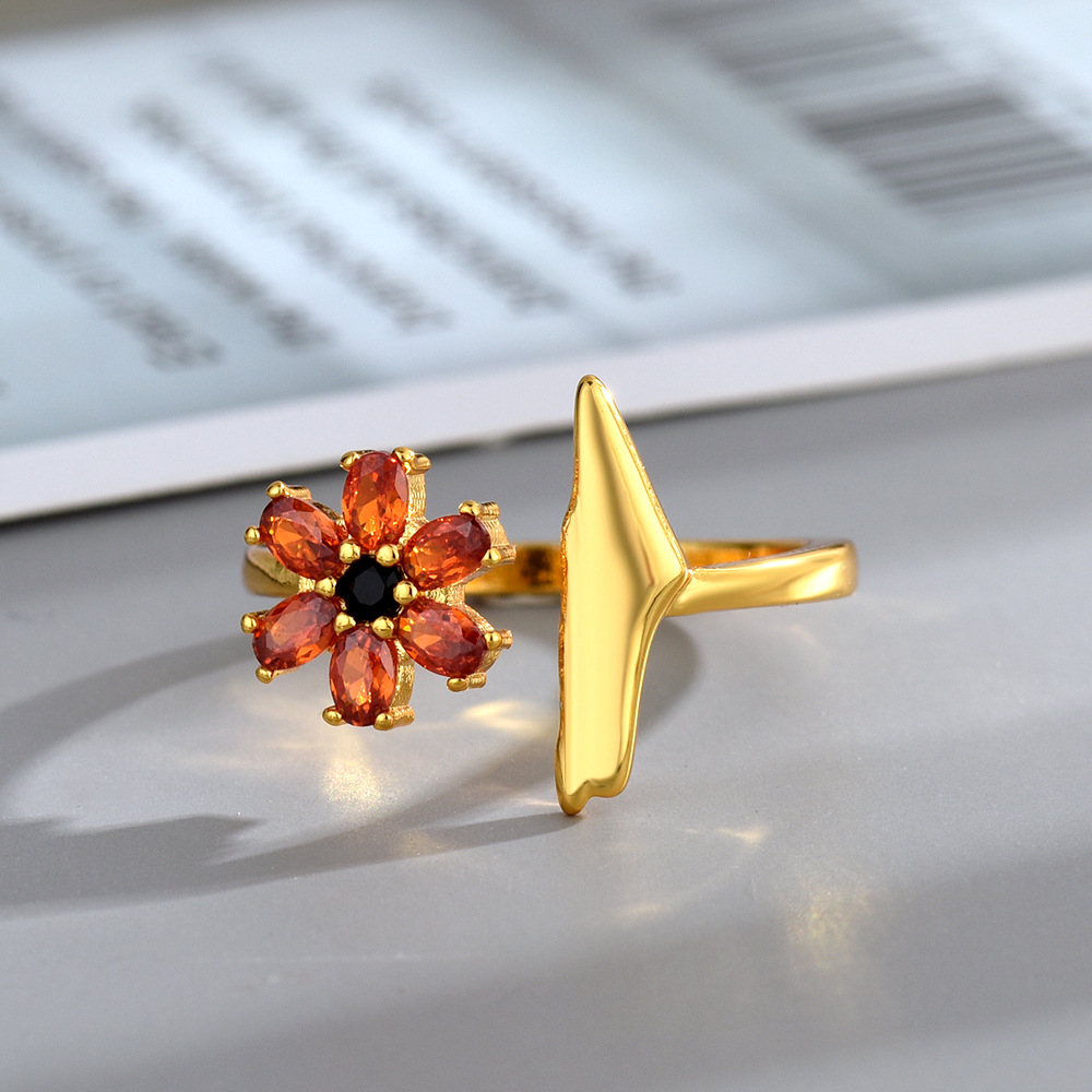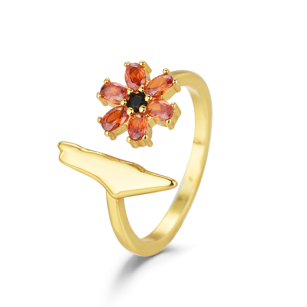 New Style Inlaid Orange Red Zirconium Red Elk Original Personality Palestine Map Flower Ring Niche Fashion Ring