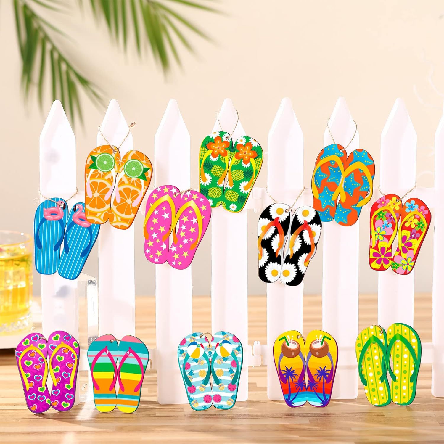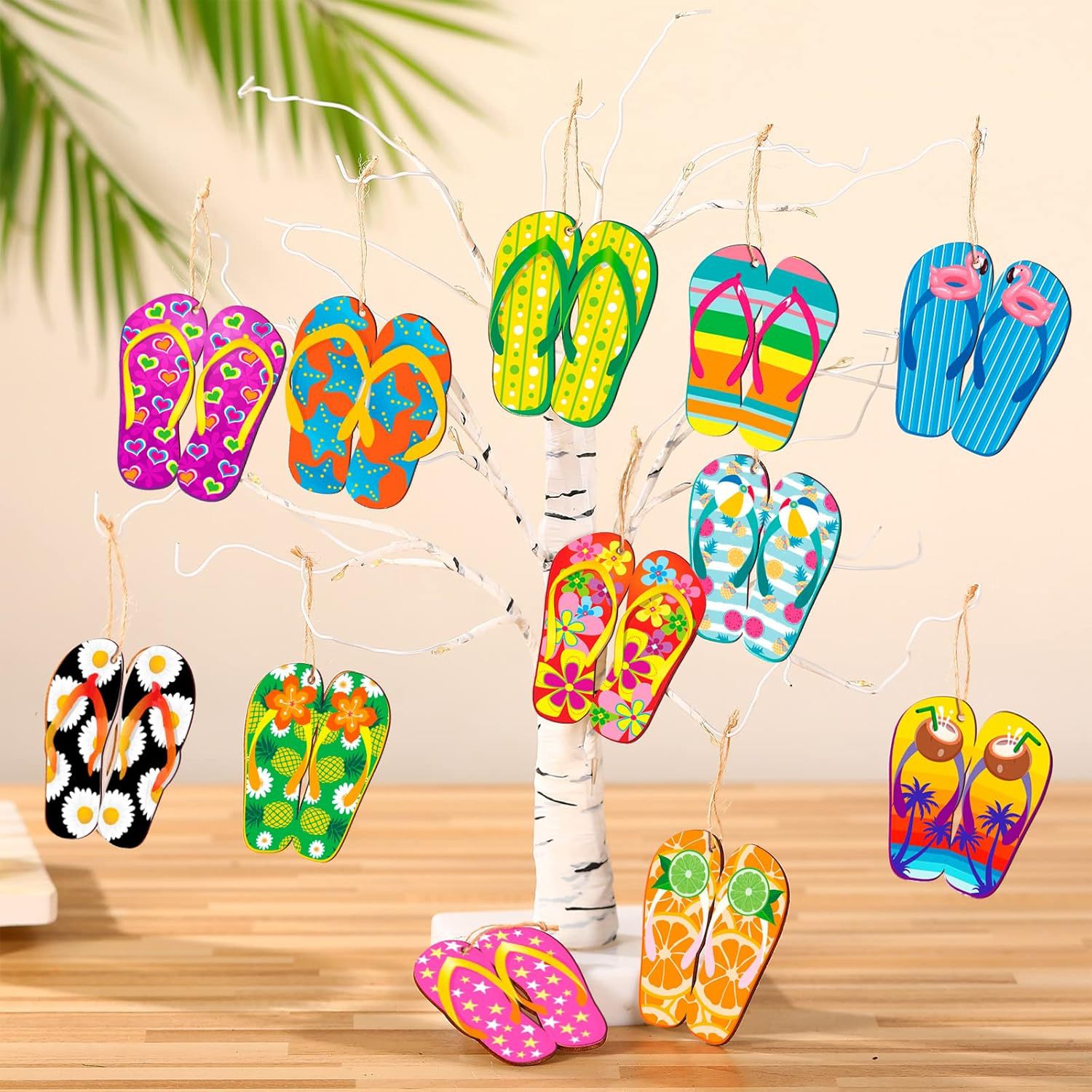 Summer Slippers Decorative Tree Summer Hawaii Beach Wooden Pendant with Rope Hawaiian Party Supplies