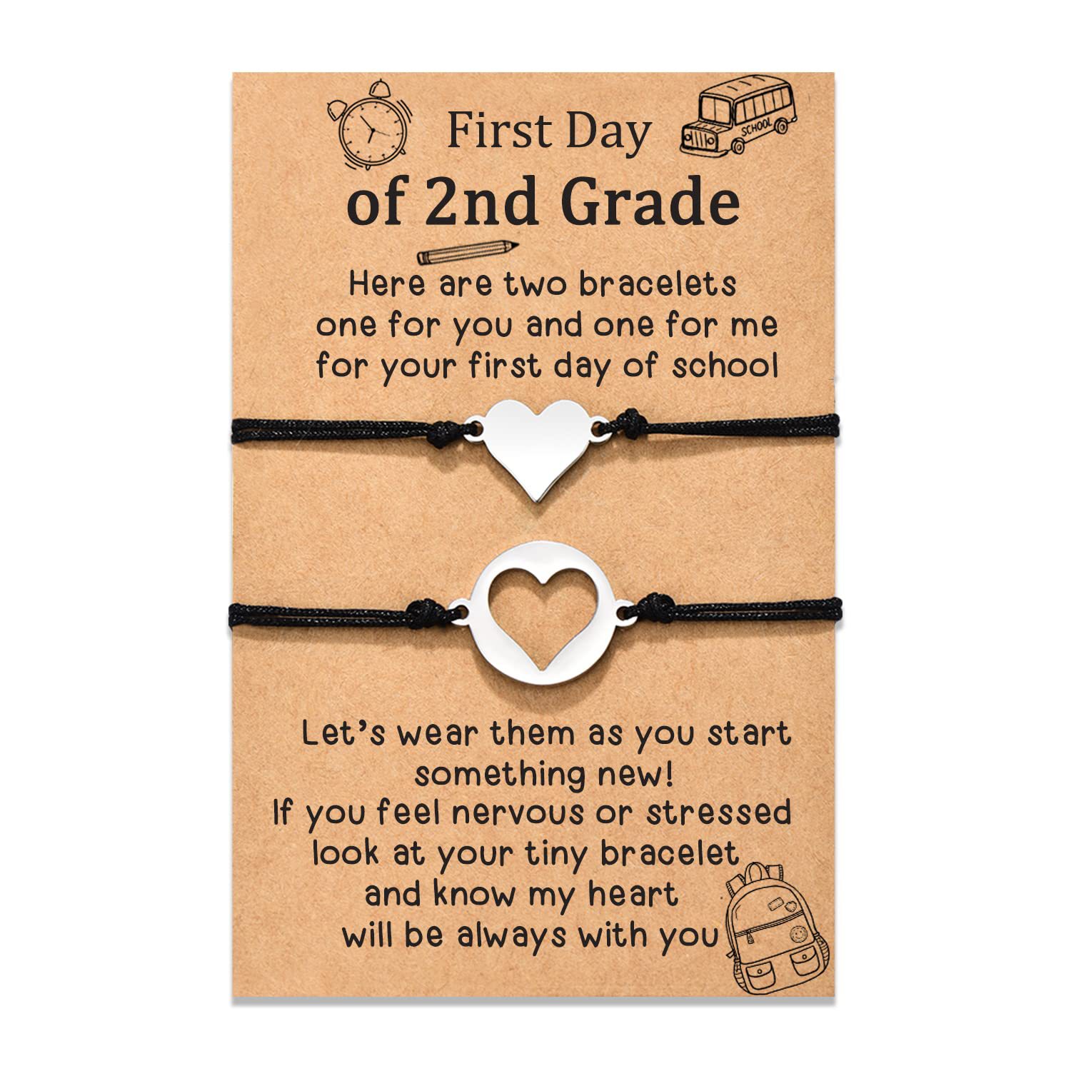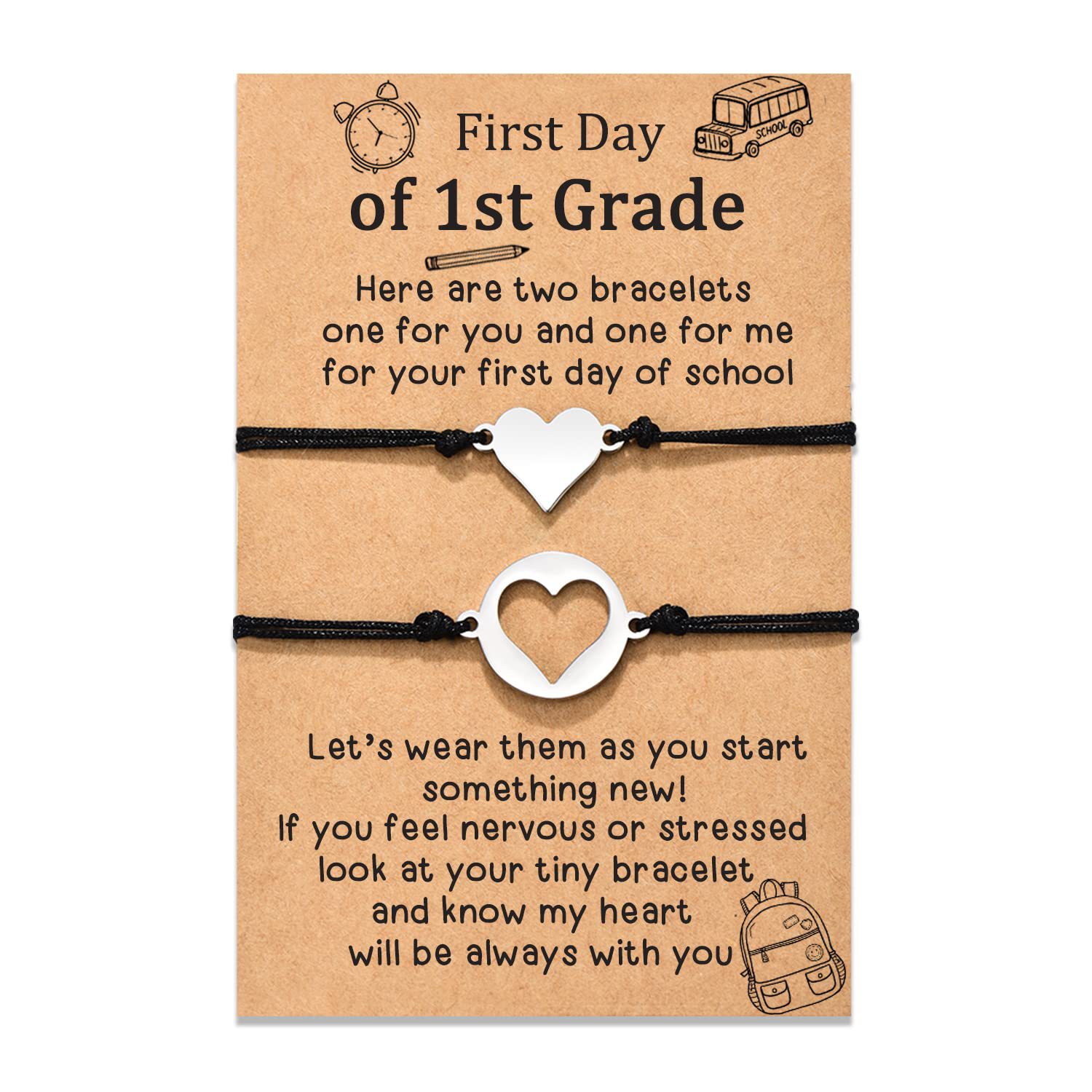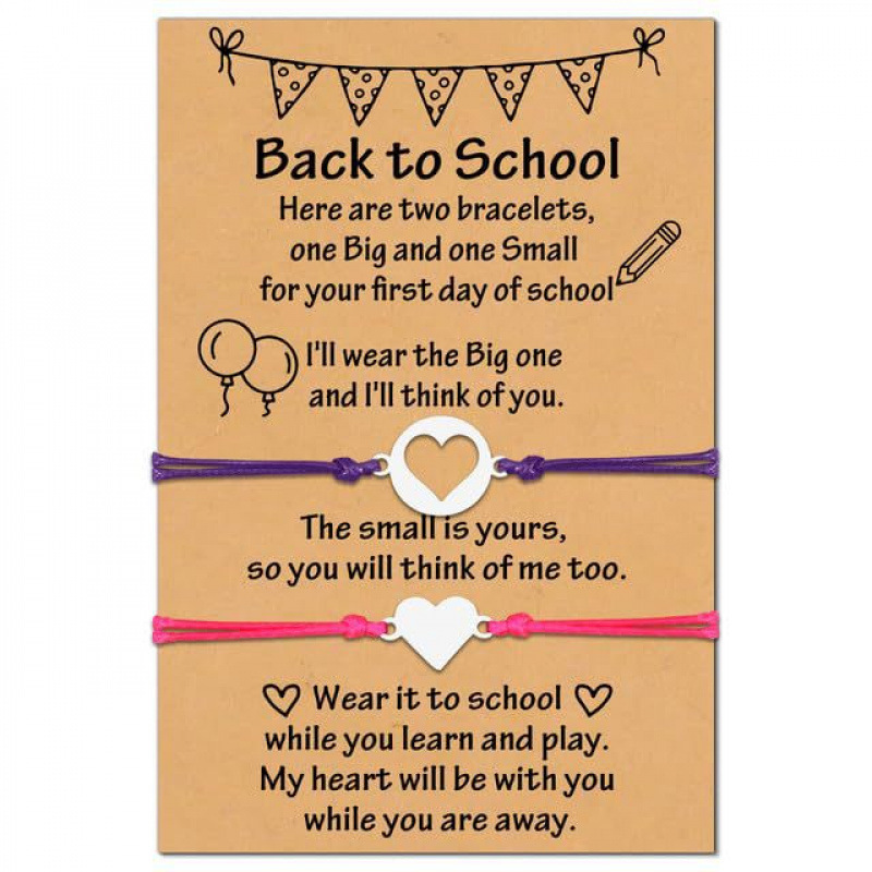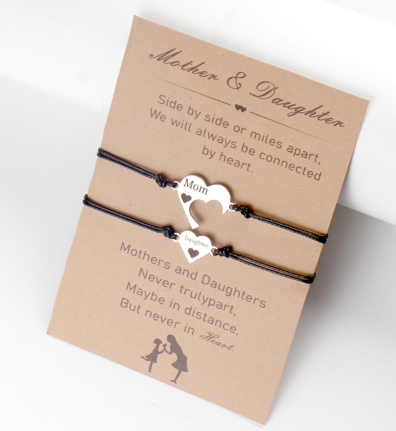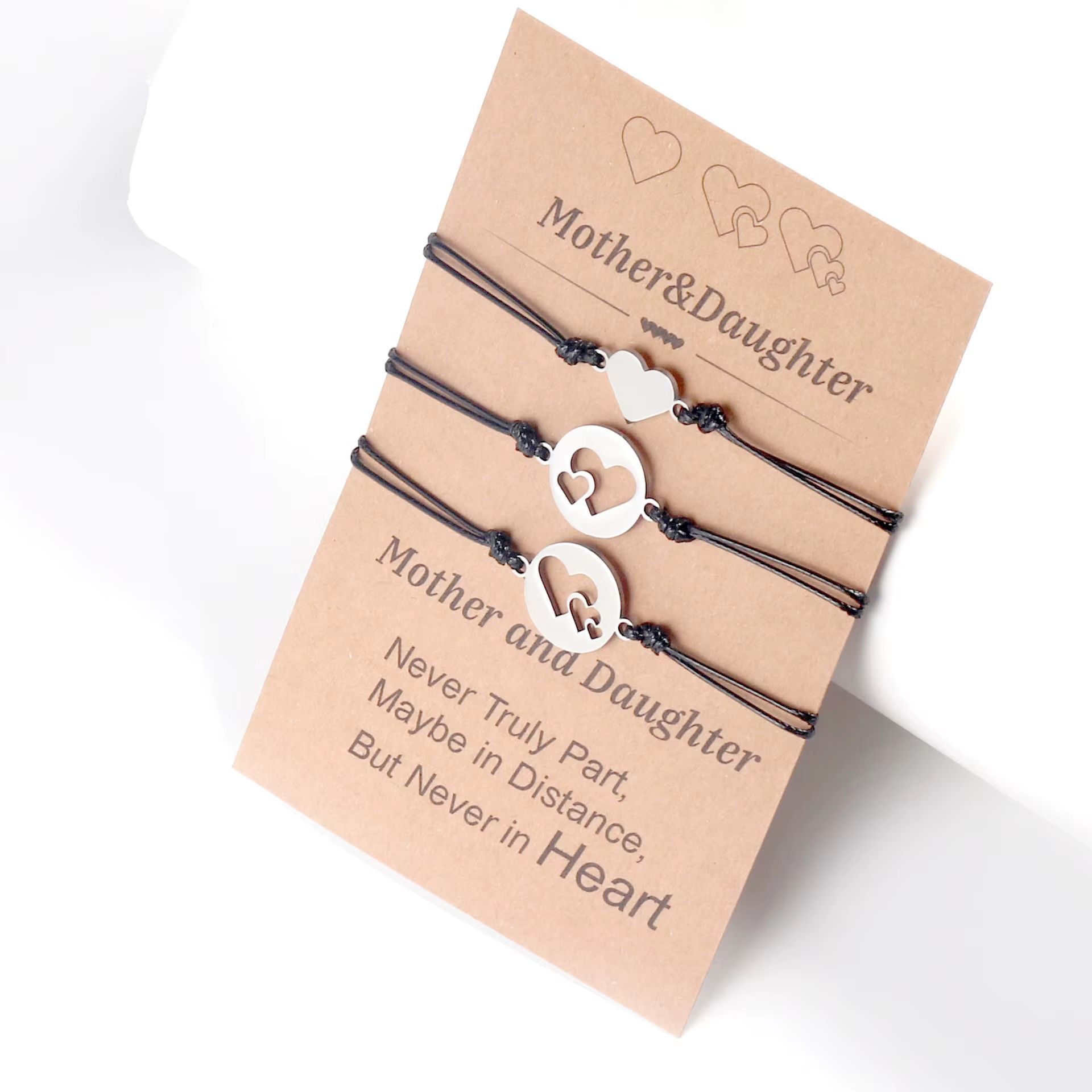Kindergarten Opening Season Bracelet First Day Woven Parent-Child Bracelet Stainless Steel Hollow Heart Set Bracelet