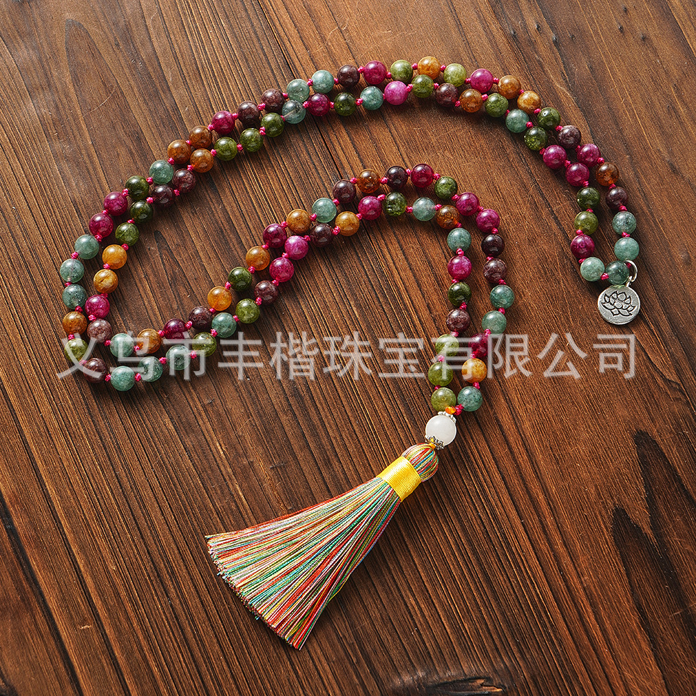 Cross-border Best Selling 108 Colorful Tourmaline Knot Necklace Bohemian Ethnic Style Necklace Hanging Neck Meditation Necklace Manufacturers